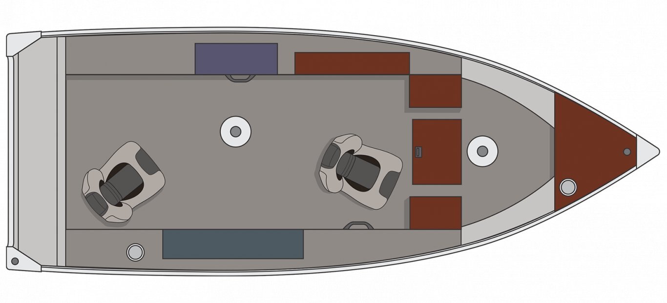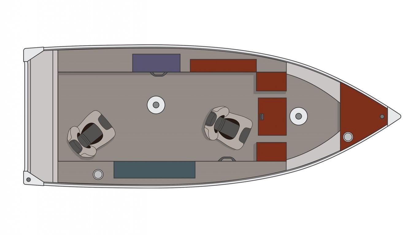 Carling switch panel with indicator lights Electric bilge pump Navigation lights 1 handle 3 cup holders 1 battery holder Emergency reboarding ladder Transducer(s) mounting plate Pressure-treated wood floor covered with marine grade vinyl