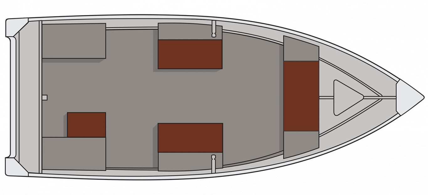 Split center seat Parallel seats at stern covered with marine grade vinyl Bow bench seat covered with marine grade vinyl