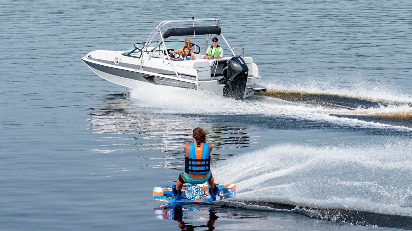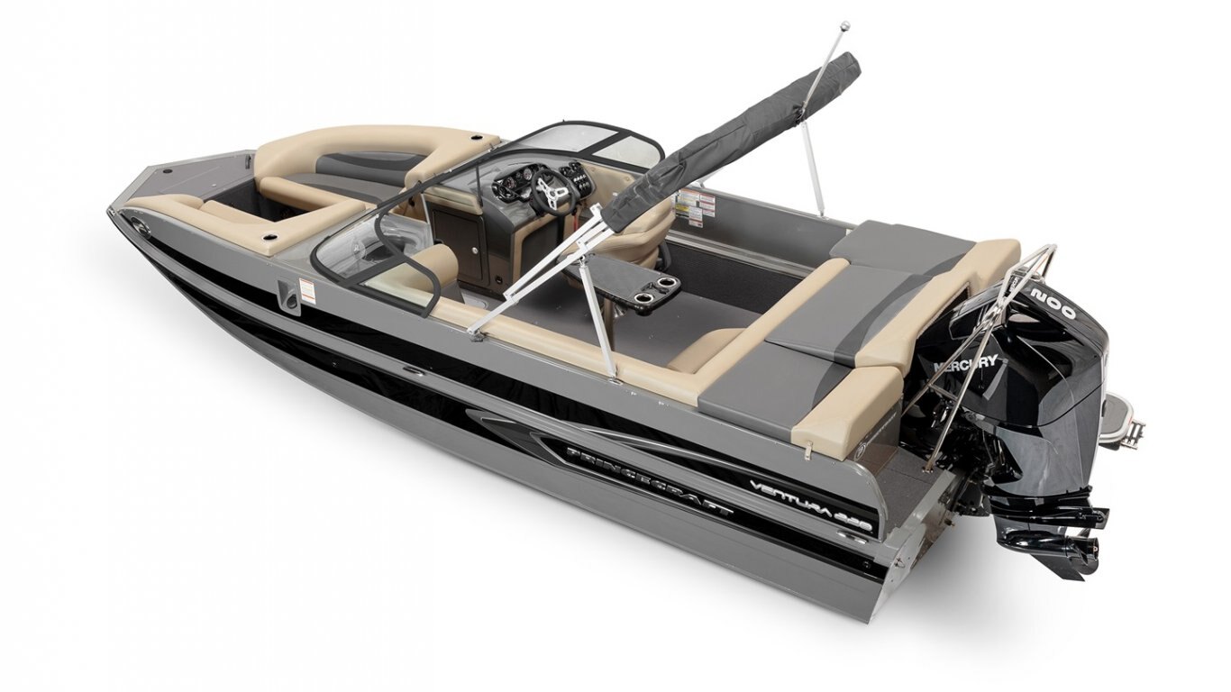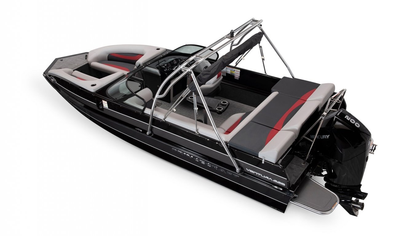 Entertainment Package Grey including ski tow bar, side swim platform (driver side) and Bolster captain's chair Entertainment Package White including ski tow bar, side swim platform (driver side) and Bolster captain's chair Entertainment Package Special Edition (SE) including ski tow bar, side swim platform (driver side) and Bolster captain's chair Anti-skid vinyl floor covering…upgrade exchange Select dark grey (Teak Supreme Solid Dark) vinyl floor covering... upgrade exchange Mercury power steering with tilt wheel (for 175, 200, and 225 HP V6 engines only)...upgrade exchange Port console galley conversion (sink, faucet, electric pump and water tank) Port side swim platform (passenger side only) Anodized wakeboard tower Anodized wakeboard tower with chrome finish bimini structure (for Ventura Special Edition (SE) only) Head Package including holding tank with a pump out system (9.8 l/ 2.6 U.S. gal.) and a pop-up privacy enclosure Special Edition Color (SE) Premium High Power Stereo System (5 high performance speakers, 10 inches subwoofer and amplifier)...upgrade exchange Active trim: automatic trim system LED docking lights Underwater lighting (2 lights) 14 x 19 Vengeance stainless steel propeller (for 150 HP PRO-XS)