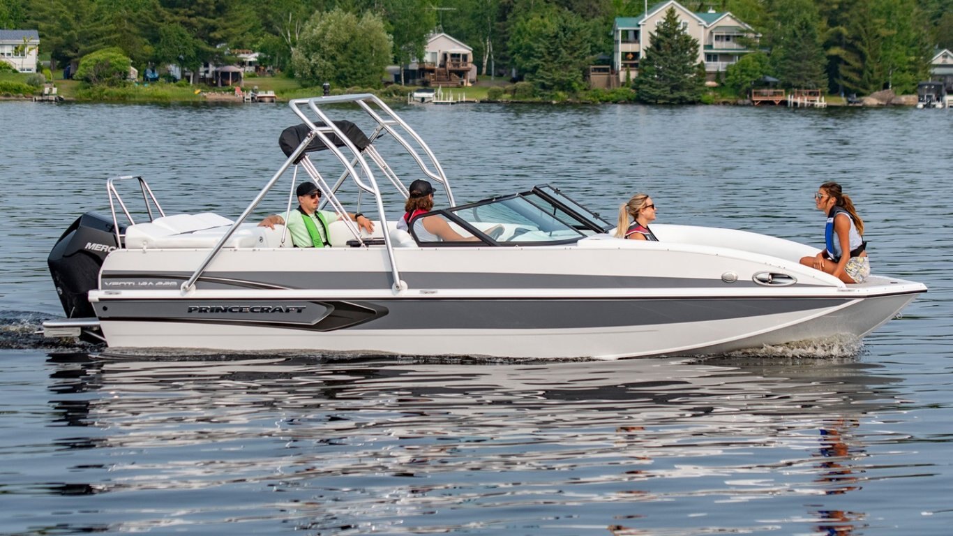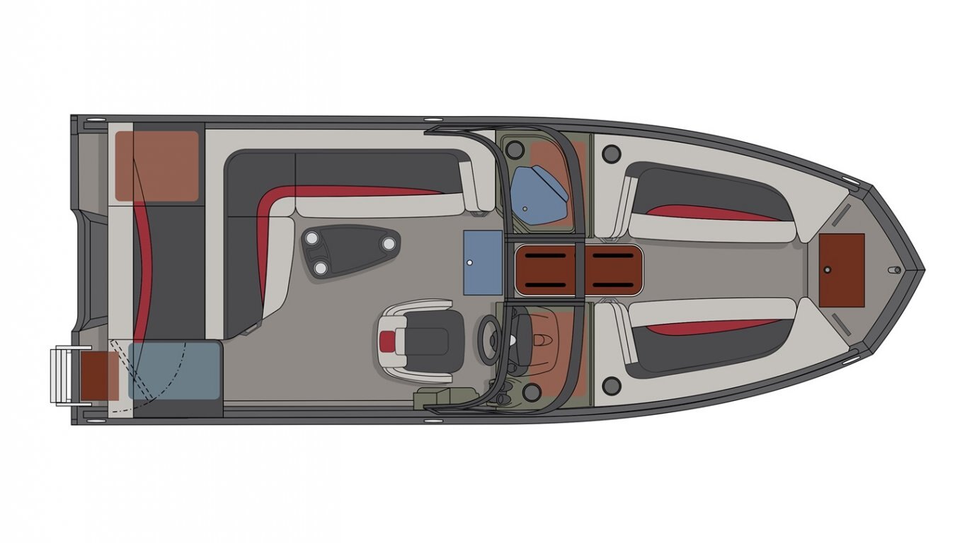 5052-H36 marine grade aluminum alloy NMMA & Transport Canada certified Pressure treated wood deck covered with marine grade carpet (20 oz) High gloss exterior High Solids urethane paint and decal package High performance deep-Vee reverse chine hull design Stainless steel bow eye 6 stainless steel cleats (6") Side panel rigging tubes (from stern to console and console to bow) Rear boarding access with gates Full-width rear padded sundeck Built-in floor cooler In-floor lockable ski storage compartment Anchor storage