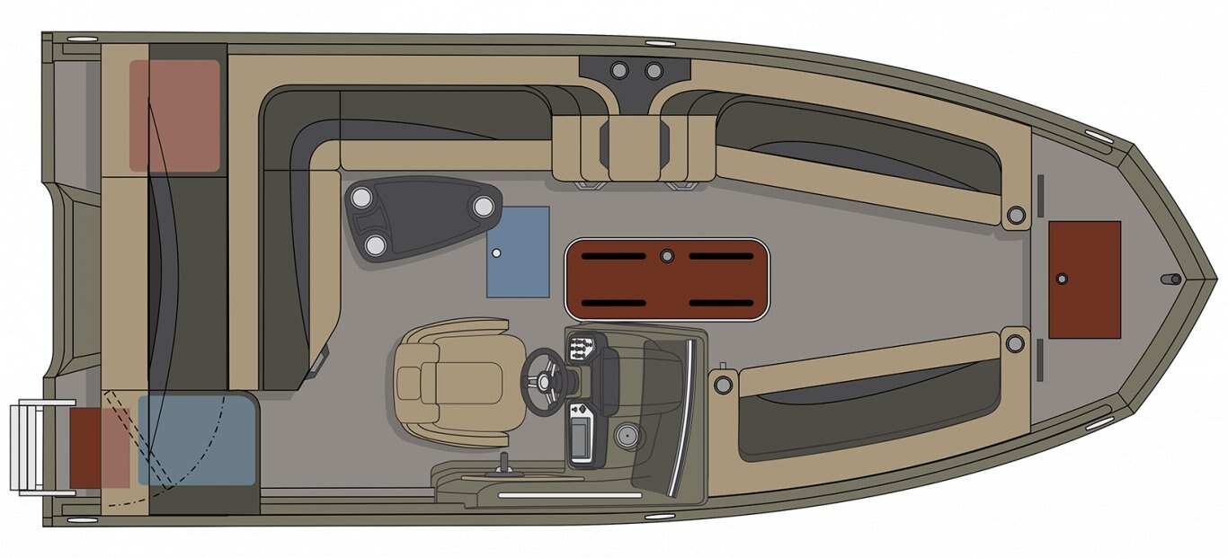 Stern boarding ladder Built-in floor fuel system 2 electric bilge pumps (500 gph) 1 battery tray Navigation lights Interior lighting Cup holders Holding handles