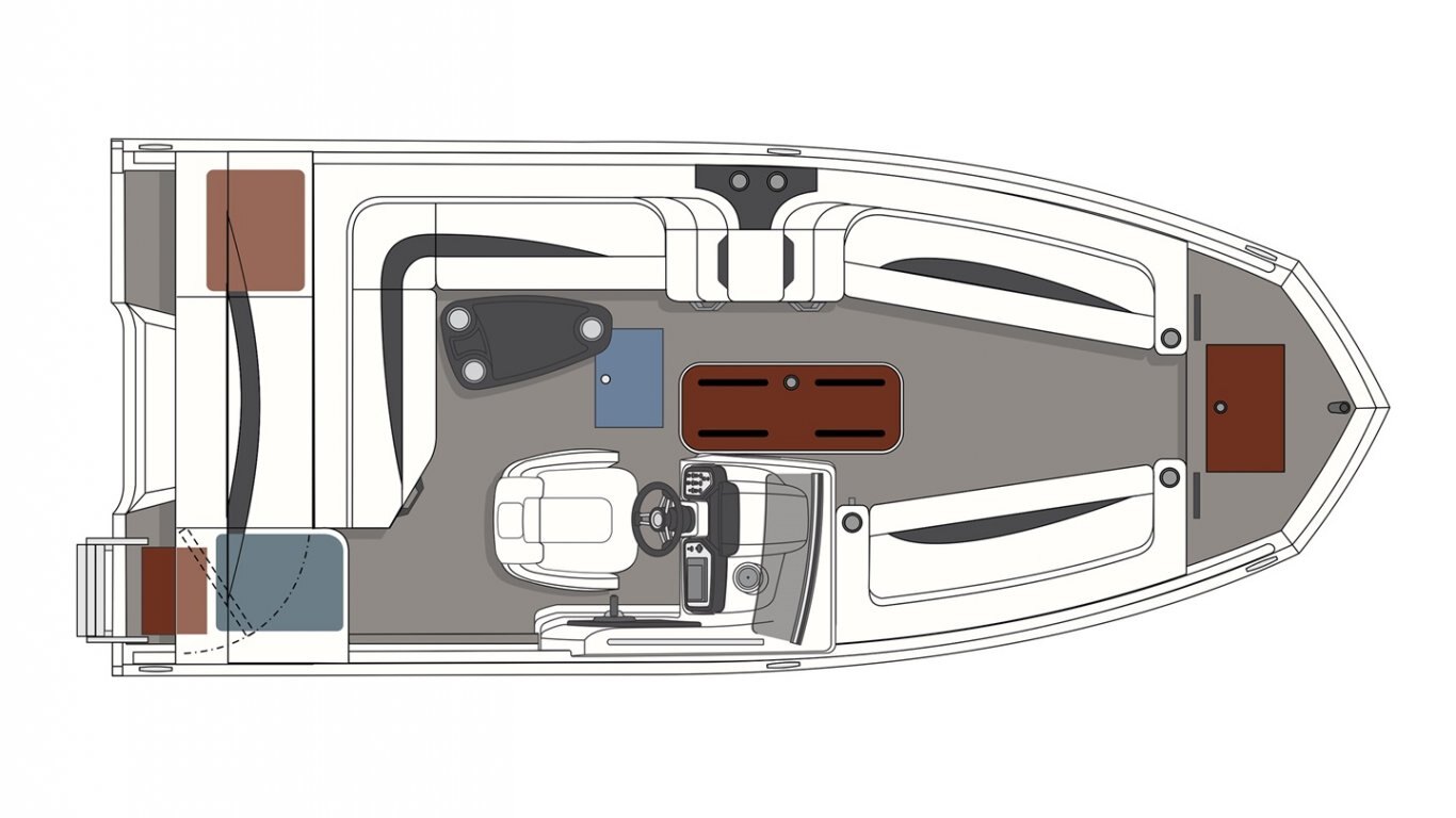 This 19’-2’’ aluminum deck boat can comfortably sit up to 8 (10 in the USA) and be powered by an engine ranging from 115 to 150 HP. With its 174 L (46 U.S. gal.) gas tank, its full-width rear padded sundeck, built-in floor cooler, its radio, and its 2 chaise lounges, it is the ideal deck boat to go cruising!