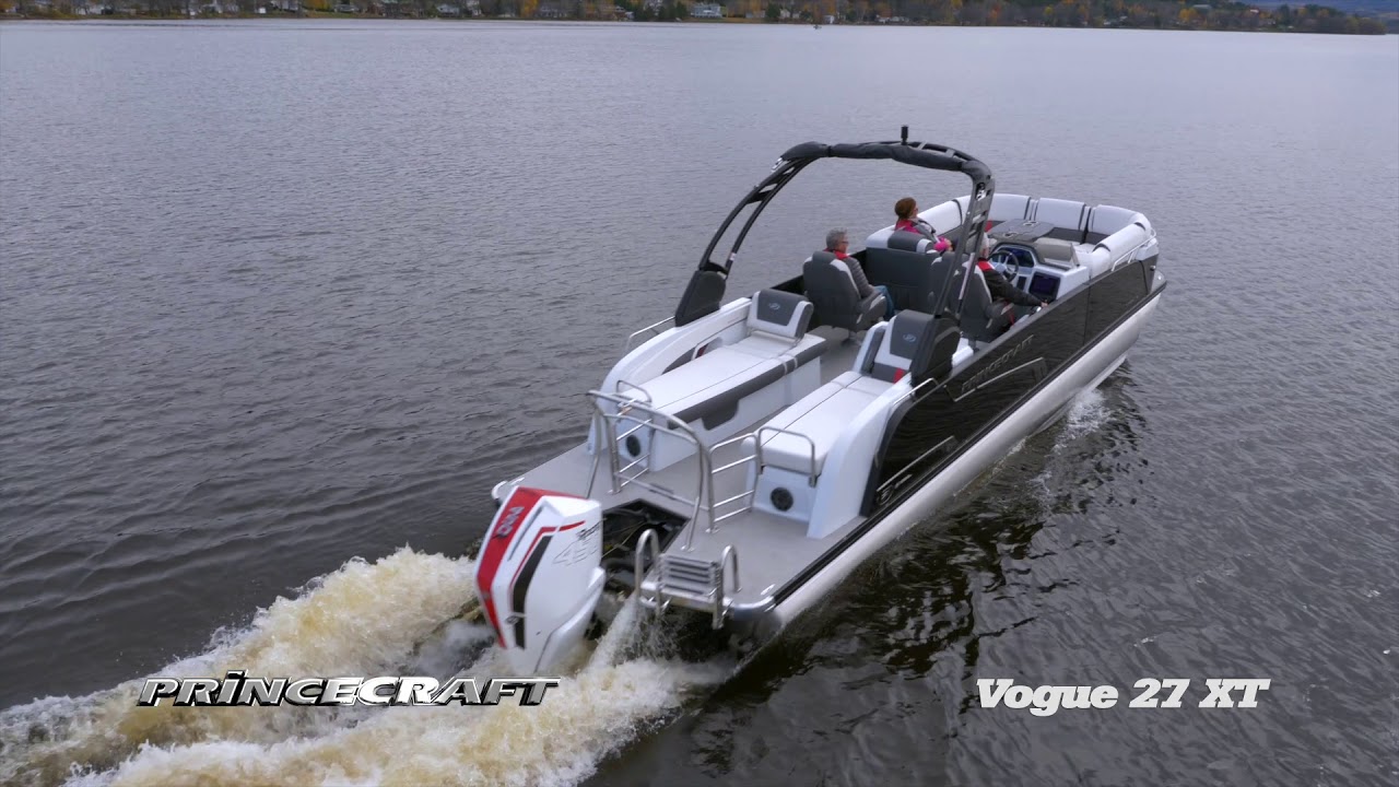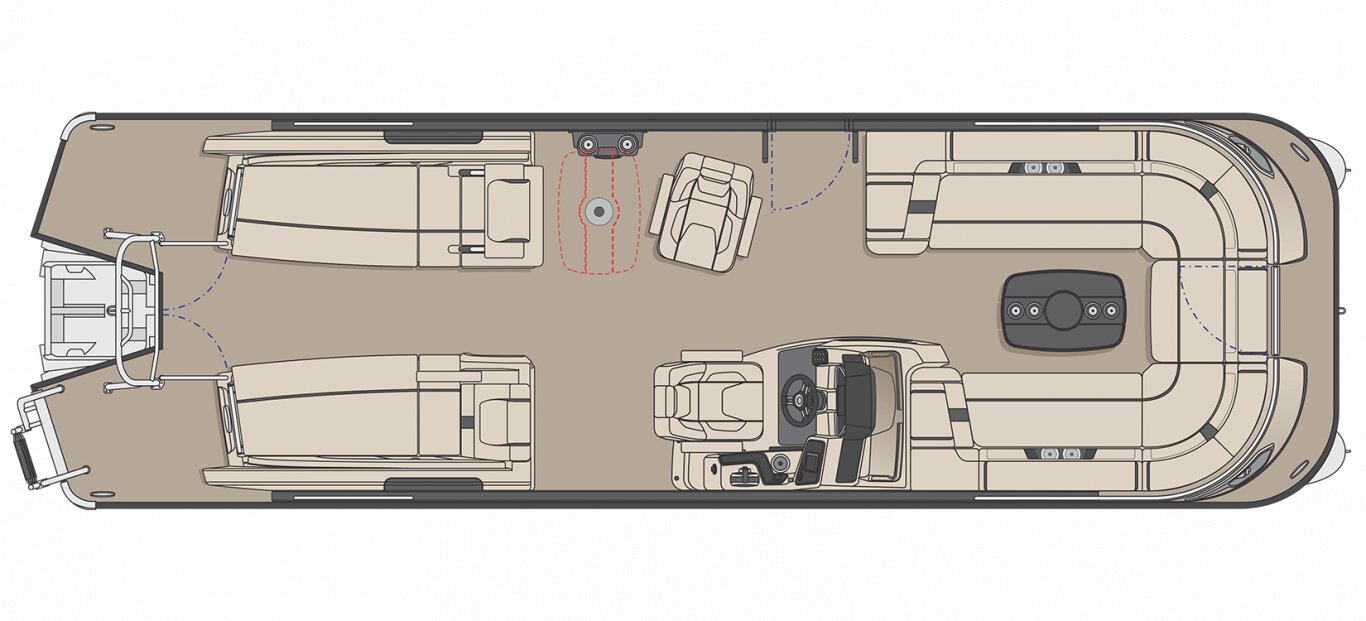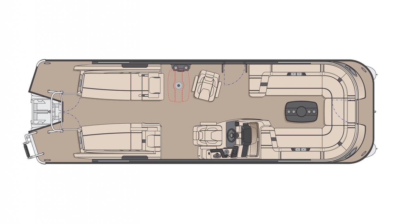 This 27’-11’’ pontoon features all the comfort and convenience you enjoy at home… and more. Automative-style raised helm console including a SIMRAD Go7 multifunction touchscreen with VesselView Link allowing instrumentation display, GPS functions, and sonar (that replaces the standard gauges) and a wireless smartphone charger; cup holder modules and USB ports integrated into the padding; integrated trash storage compartment; folding table with cup holders; oversized stern swim platform and boarding ladder. Without forgetting the XT design including a multi-positions seat module, an integrated cooler, a privacy enclosure, safety railing around the rear seats, and a stainless steel ski tow bar. Have a party with up to 13 friends or enjoy your favorite water sports in the greatest luxury. Rig your pontoon with an engine from 150 up to 450 HP with the standard Performance Configuration and get ready for some serious fun!