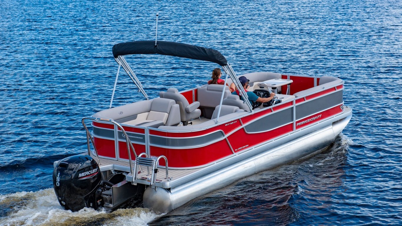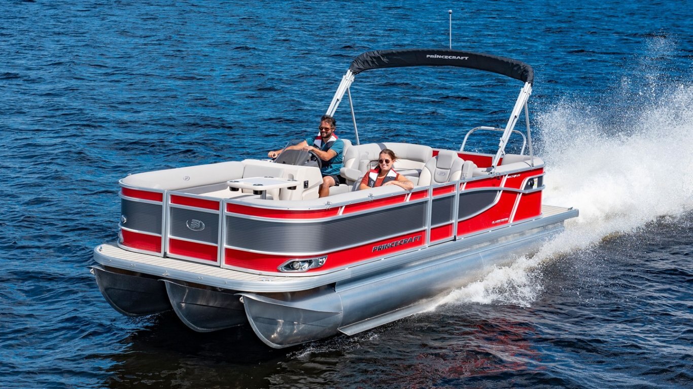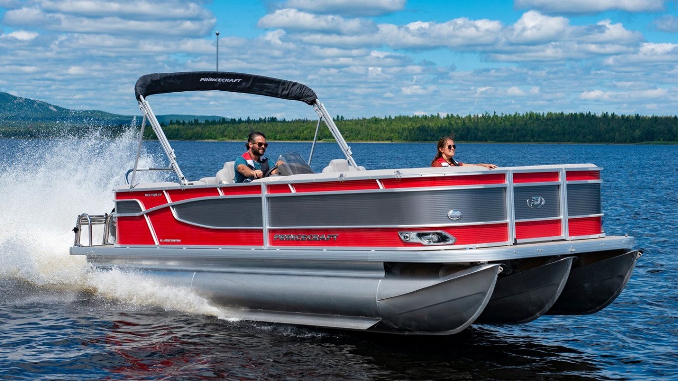 Speed configuration for 2-log models: lifting strakes, reinforced tube noses and under-deck spray shield Sport Configuration: bow central half 3rd log, lifting strakes, reinforced tube noses and under-deck spray shield Performance Configuration: 3rd log, under-deck spray shield, lifting strakes, reinforced tube noses and 49 U.S. gal./ 185 L gas tank Standard Classic Edition: Classic Edition logo on both sides, 3D chrome Princecraft decals on both sides and front door (no other decals), LED lighting under driver console, deluxe driver (and passenger, if applicable) seat(s), upgraded steering wheel, chrome docking lignts, horn, housings and cup holders Silver Premium Classic Edition: Classic Edition logo on both sides, 3D chrome Princecraft decals on both sides and front door, graphic package with metallic color accent, LED lighting under driver console, deluxe driver (and passenger, if applicable) seat(s), upgraded steering wheel, chrome docking lights, horn, housings and cup holders Plus Upholstery, including textured grey replacing the color accent...upgrade exchange Mood Package including bow snack table, in-dash cubby and door on the side of the console In-console door and glovebox Dinette Package: flip flop seat with cooler...upgrade exchange Select Grey vinyl floor covering (Teak Supreme Solid)...upgrade exchange Select dark grey vinyl floor covering (Teak Supreme Solid Dark)...upgrade exchange Select grey vinyl with black lines floor covering (Teak Supreme 2)... upgrade exchange Mercury power steering with tilt wheel (for 175, 200, and 225 HP V6 only)...upgrade exchange SeaStar hydraulic steering system with tilt wheel and slider for captain's chair (included with 150 HP engine and up)...upgrade exchange Tilt steering mechanism and slider for driver seat…upgrade exchange Head Package including holding tank with a pump out system (9.8 l/ 2.6 U.S. gal.) and a pop-up privacy enclosure Deluxe driver seat replacing the standard seat...upgrade exchange Deluxe passenger seat replacing the standard passenger seat…upgrade exchange 200-watt AM/FM/Bluetooth Kicker® KMC 100 Stereo in console with 6 speakers…upgrade exchange Active trim: automatic trim system LED lighting on logs 14.7 x 16 Enertia stainless steel propeller (for Speed and Sport config. with 150 HP engine only)...upgrade exchange 15.3 x 14 Enertia stainless steel propeller (for Performance config. with 150 HP engine only)...upgrade exchange