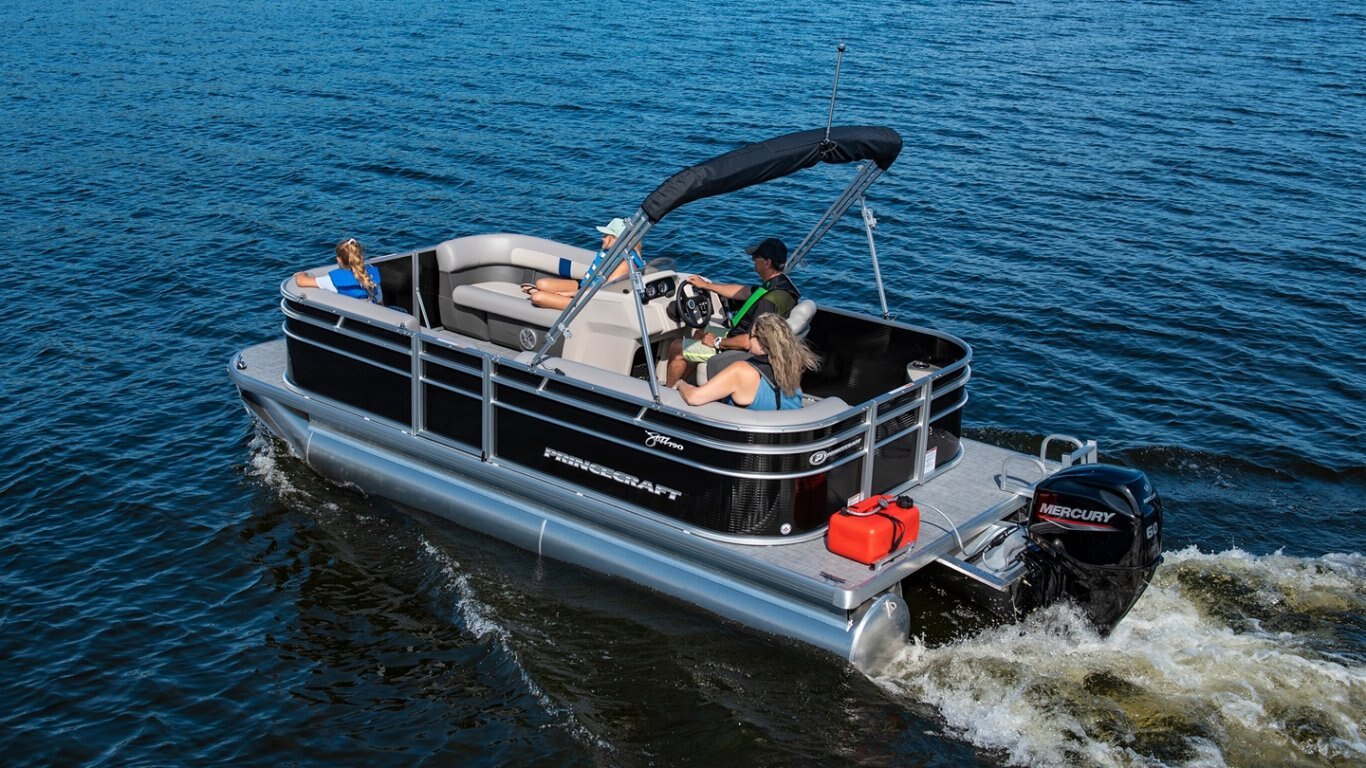This 19’-7’’ pontoon is right on key and will jazz up the way you do summer. Accomodating up to 6 people (8 in the USA) and an engine up to 60 HP, the Jazz 190 will please you with its new upholstery, new console and new exterior look. An affordable and attractive pontoon that will allow you to enjoy the pleasures of boating to the fullest!