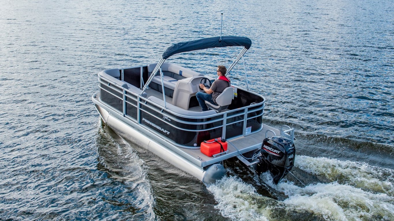 This 17’-7’’ pontoon is right on key and will jazz up the way you do summer. Accomodating up to 5 people (7 in the USA) and an engine up to 50 HP, the Jazz 170 will please you with its new upholstery, new console and new exterior look. An affordable and attractive pontoon that will allow you to enjoy the pleasures of boating to the fullest!
