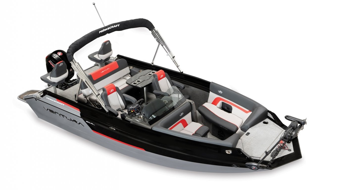 12V or 24V bow trolling motor plug & receptacle with 2 battery tie-downs 44” long built-in electric-filled aerated livewell (77 L / 20 U.S. gal.) 8-foot for 2 rods and 7-foot for 2 rods built into the lockable in-floor ski compartment