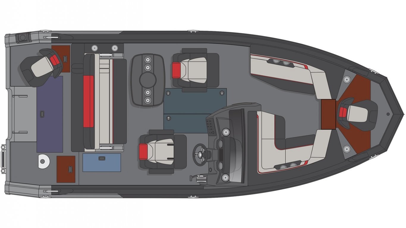 Stern boarding ladder Built-in floor fuel system 2 electric bilge pumps (500 gph) 4 battery trays Navigation lights Interior lighting Stainless steel propeller (standard on 175 HP engines and up) Cup holders Holding handles Select dark grey vinyl floor covering (Teak Supreme Solid Dark)