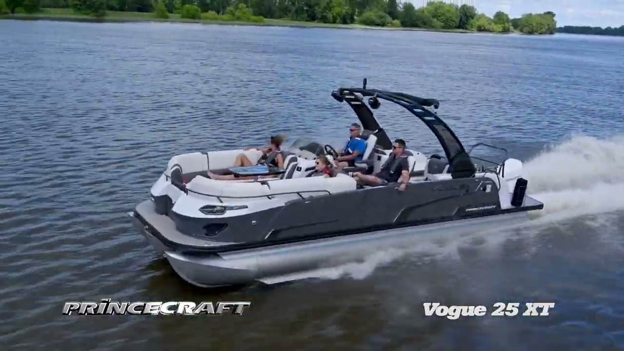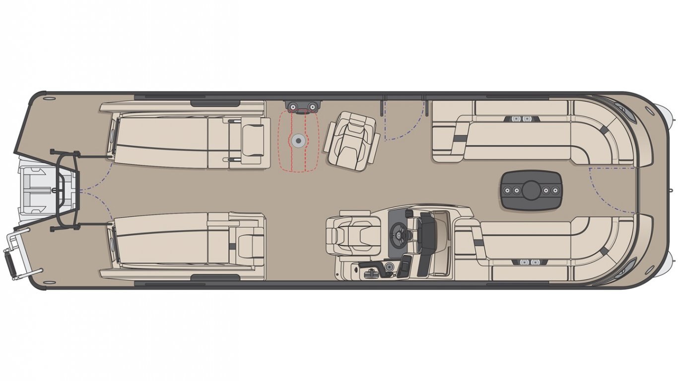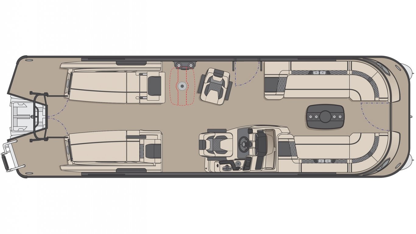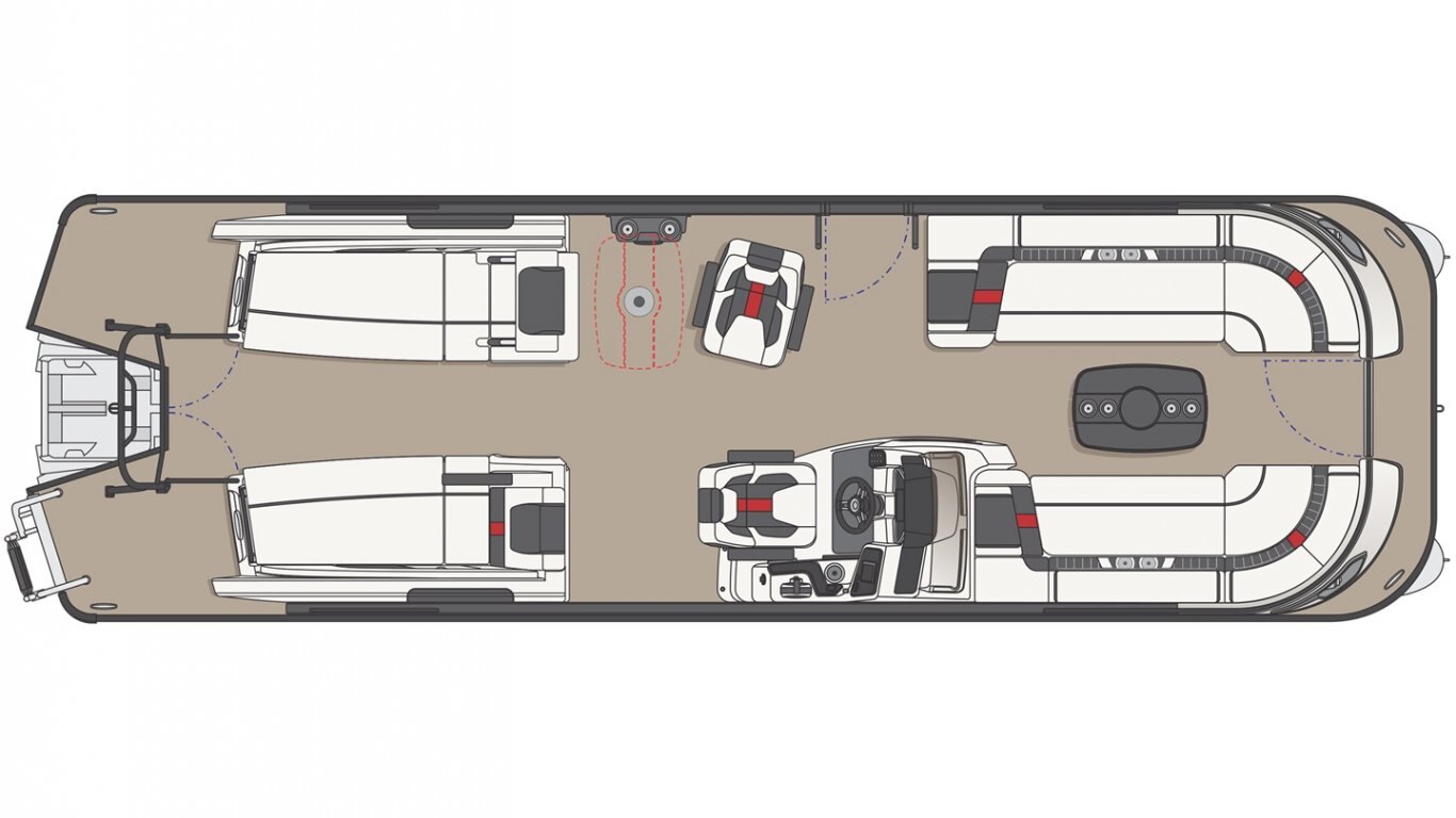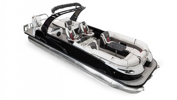 5052-H36 marine grade aluminum alloy 2 1/2" heavy-duty extruded Z-aluminum cross channels NMMA & Transport Canada certified APS style side panels Sealed pontoon bulkheads with top mounted air plug (25") V-shaped aluminum engine pod Select dark grey vinyl floor covering (Teak Supreme Solid Dark) Extruded aluminum full-length pontoon keels Extruded aluminum full-length pontoon skirting Stern molded corners Walk-thru rear gate with lift and lock hinges Walk-thru bow gate with lift and lock hinges Port side gate with lift and lock hinges (20") Extra large stern swim platform Bow fiberglass molded section with integrated LED lighting Stainless steel bow eye 4 stainless steel recessed cleats Rear gate holder Performance Configuration: 3rd log, full-length aluminum under-deck spray shield, lifting strakes, 49 U.S. gal. / 185 L gas tank, and 1 in-floor storage compartment