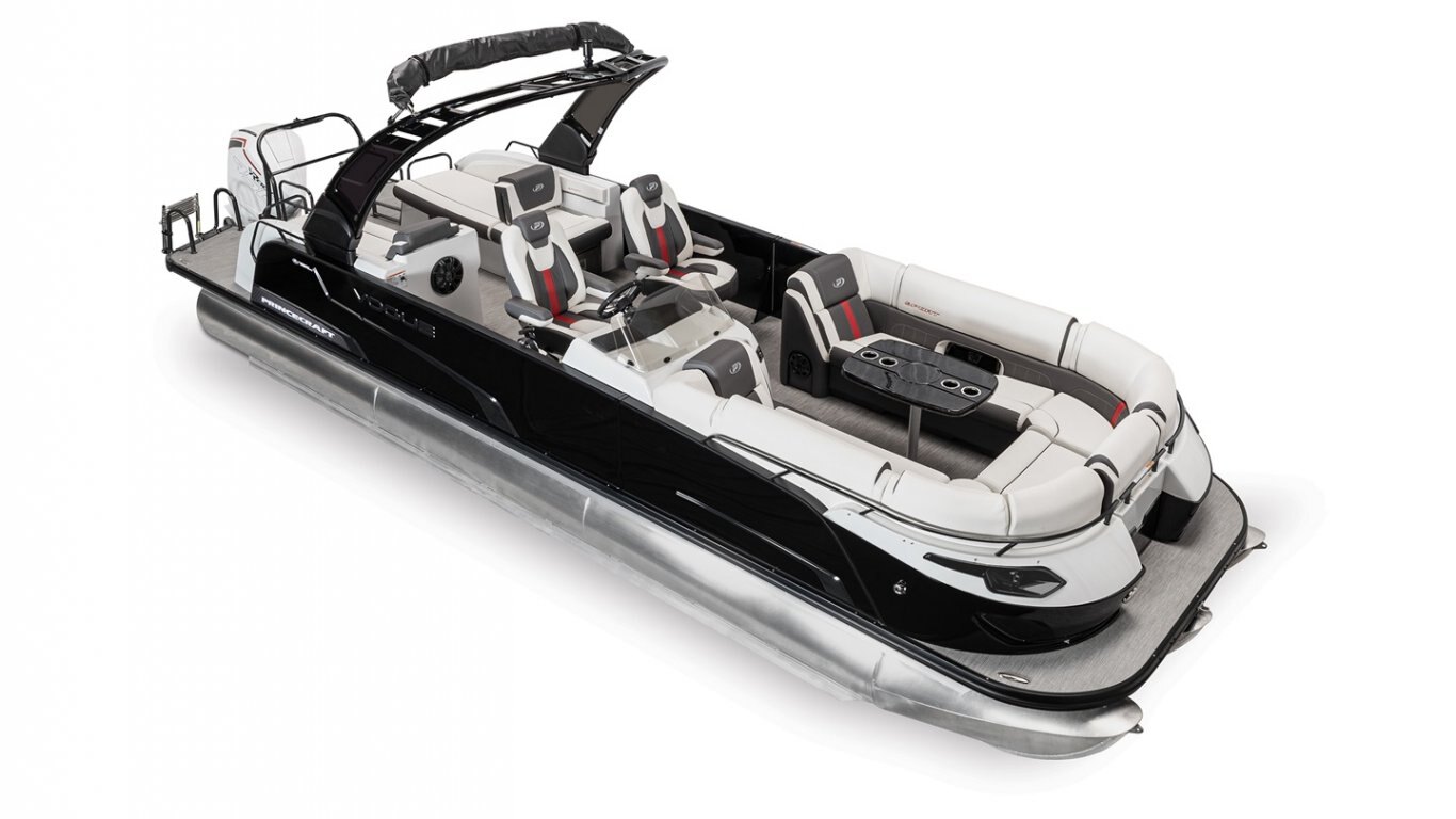 Vogue domed decal package (black chrome)…UE Sport Ice Edition including Sport Edition logo on both sides, premium upholstery textured vinyl, LED lighting on floor, bimini top, pontoon logs, speakers, and fixed cup holders Platinum Meteorite Edition including Platinum Edition logo on both sides, diamond premium upholstery textured vinyl, LED lighting on floor, bimini top, pontoon logs, speakers and fixed cup holders
