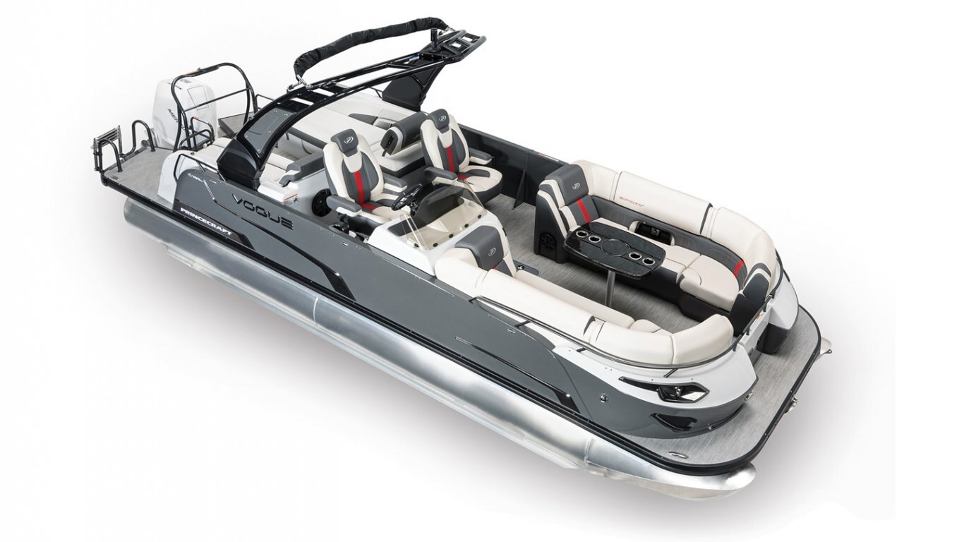 Wakeboard tower including bimini top (black) - Electric system - Performance configuration required 2 stainless steel fender supports 2 additional fender hanger clips (Vogue only) Head with holding tank & pump out system (9.8 l/ 2.6 U.S. gal.) Removable bow seat Removable bow seat (Sport Edition) Removable bow seat (Platinum Edition) Folding rectangular pedestal mount removable table with cup holders Barbecue (BBQ) gas grill