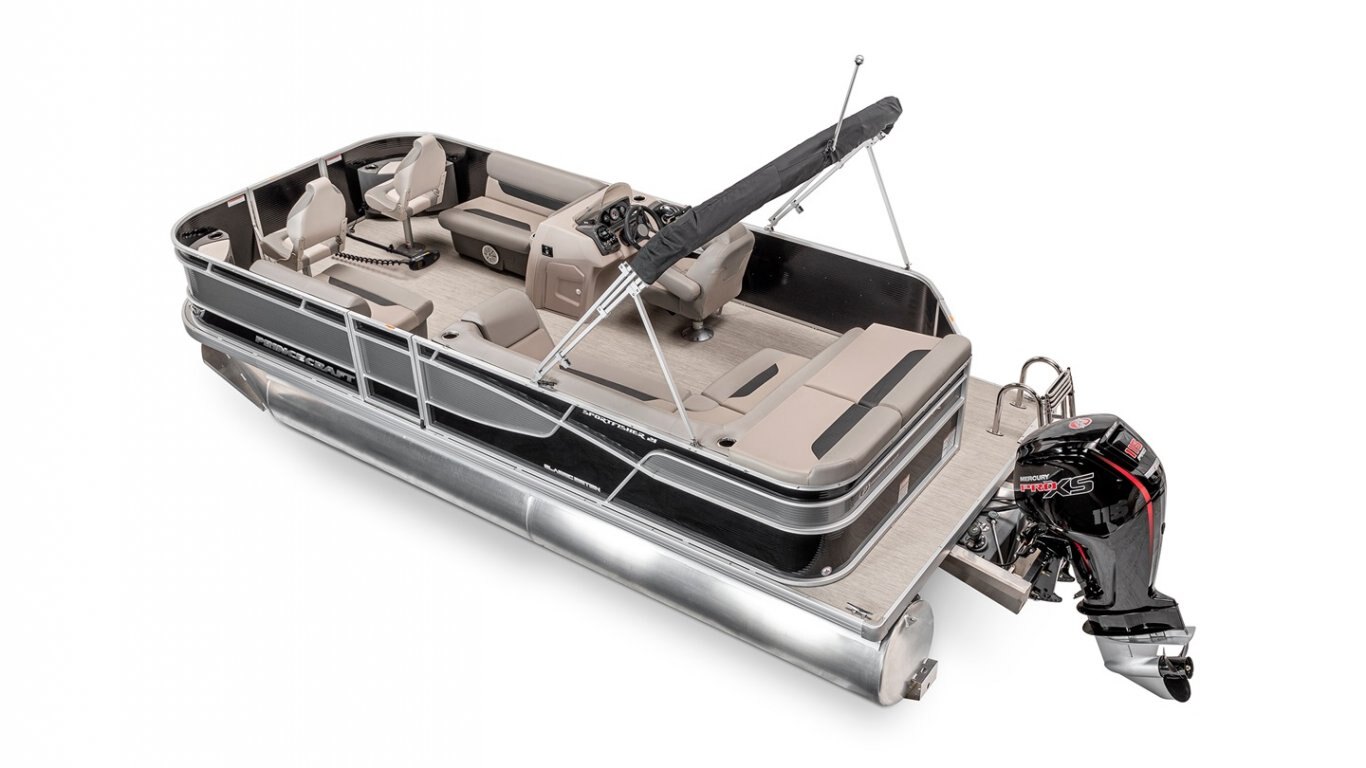 5052-H36 marine grade aluminum alloy 2 1/2" heavy-duty extruded Z-aluminum cross channels NMMA & Transport Canada certified 1 1/4" anodized aluminum rails Sealed pontoon bulkheads with top mounted air plug (25") V-shaped aluminum engine pod Select dark grey vinyl floor covering (Teak Supreme Solid Dark) Extruded aluminum full-length pontoon keels Extruded aluminum full-length pontoon skirting Stern molded corners Walk-thru rear gate with lift and lock hinges Walk-thru bow gate with lift and lock hinges Port side gate with lift and lock hinges (22") Stern swim platform Stainless steel bow eye 4- 6" chromed deck cleats