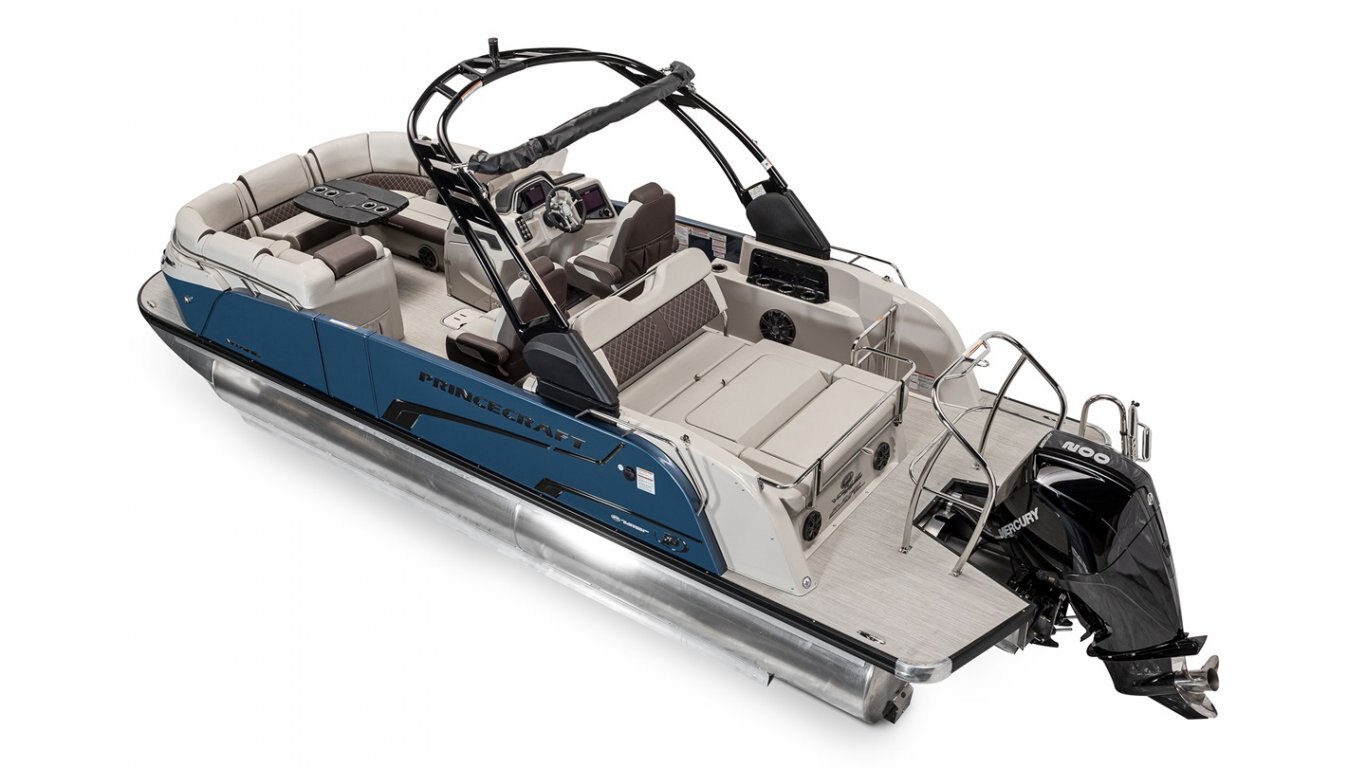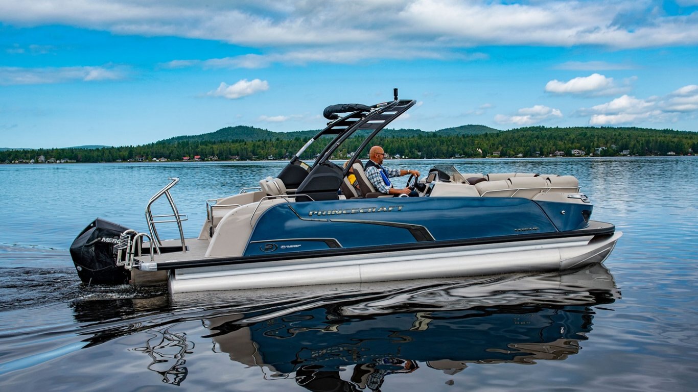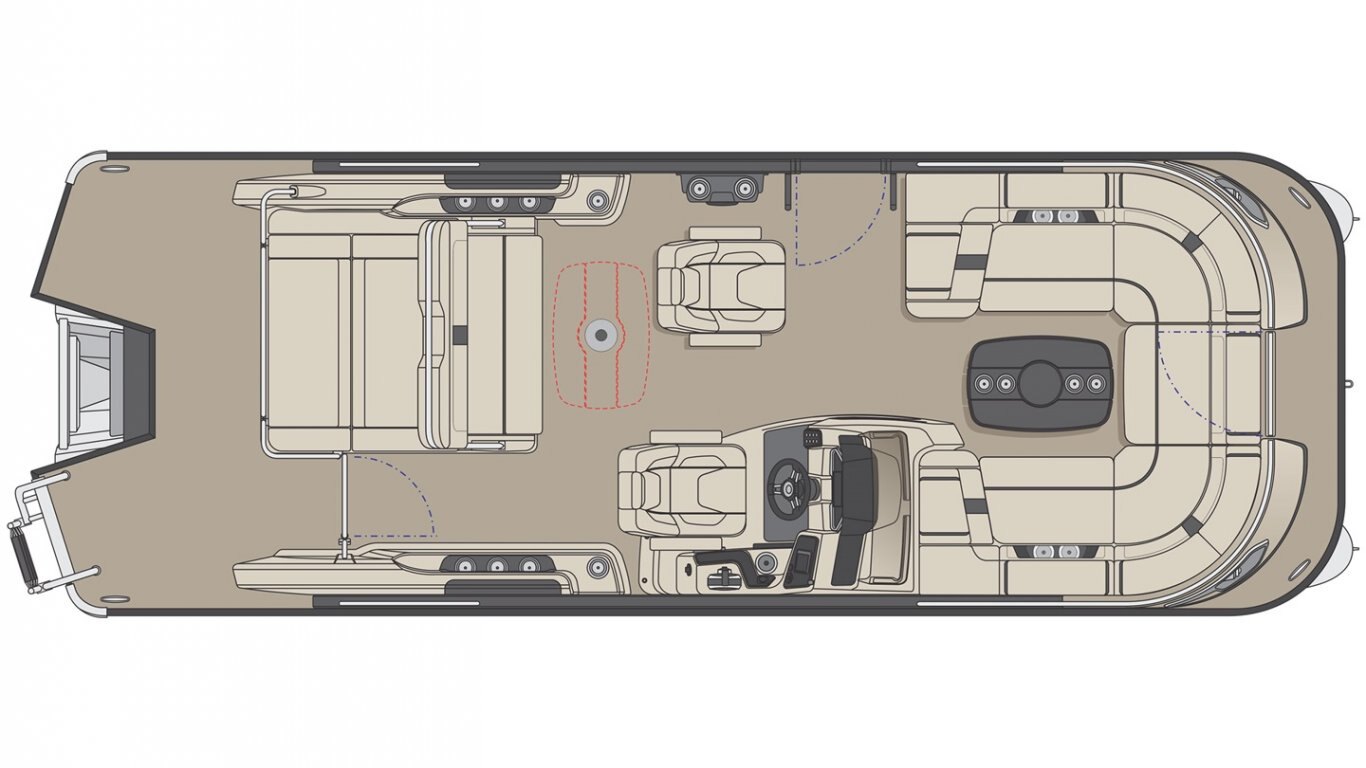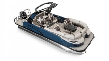 This 23’-11’’ pontoon features all the comfort and convenience you enjoy at home… and more. New automative-style raised helm console including a SIMRAD Go7 multifunction touchscreen with VesselView Link allowing instrumentation display, GPS functions, and sonar (that replaces the standard gauges) and a wireless smartphone charger; new cup holder modules and USB ports integrated into the padding; new integrated trash storage compartment; new folding table; oversized stern swim platform and boarding ladder. Without forgetting the RL design including a multi-position seat module, an integrated cooler and privacy enclosure, and safety railing around the rear seat. Have a party with up to 10 friends or enjoy your favorite water sports in the greatest luxury. Rig your pontoon with an engine up to 250 HP (with the optional Performance Configuration) and get ready for some serious fun!