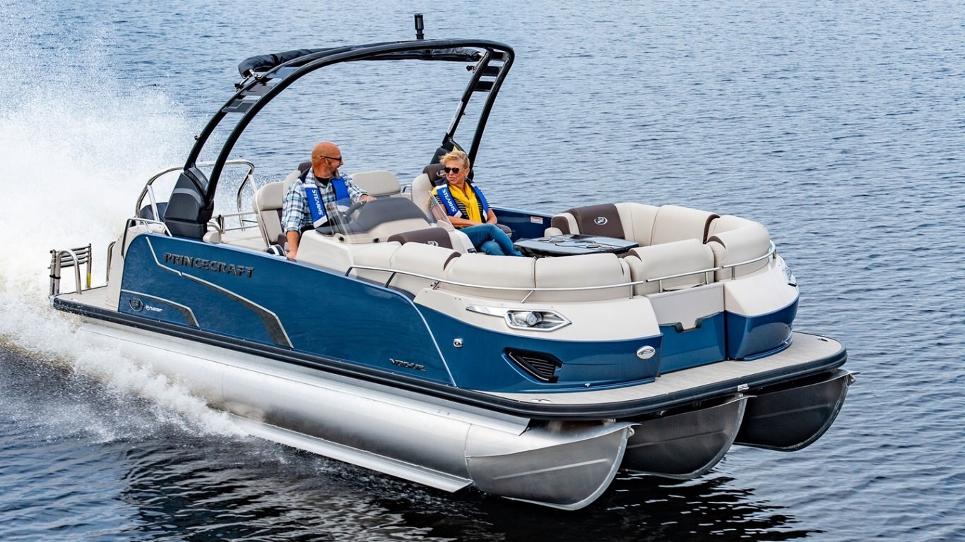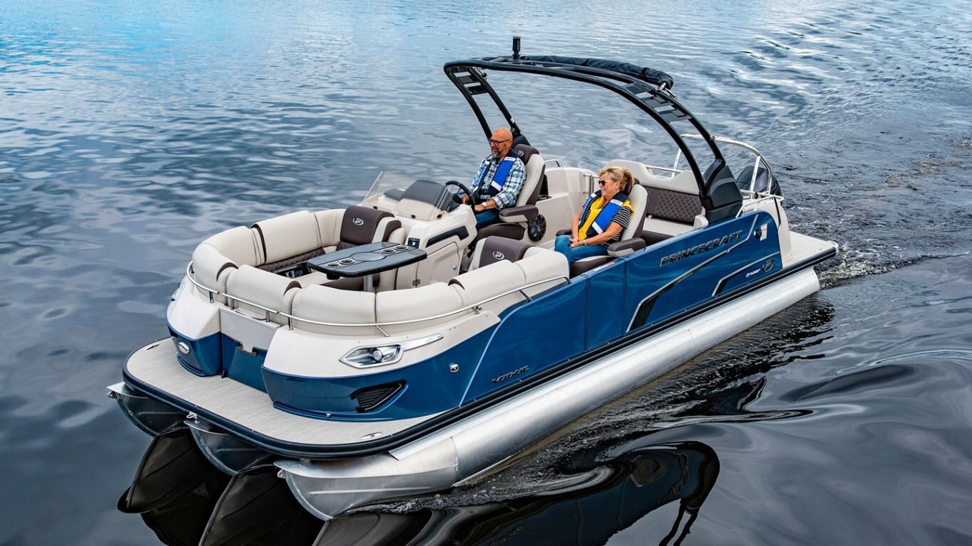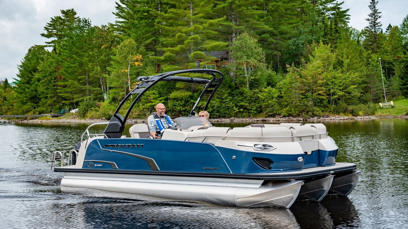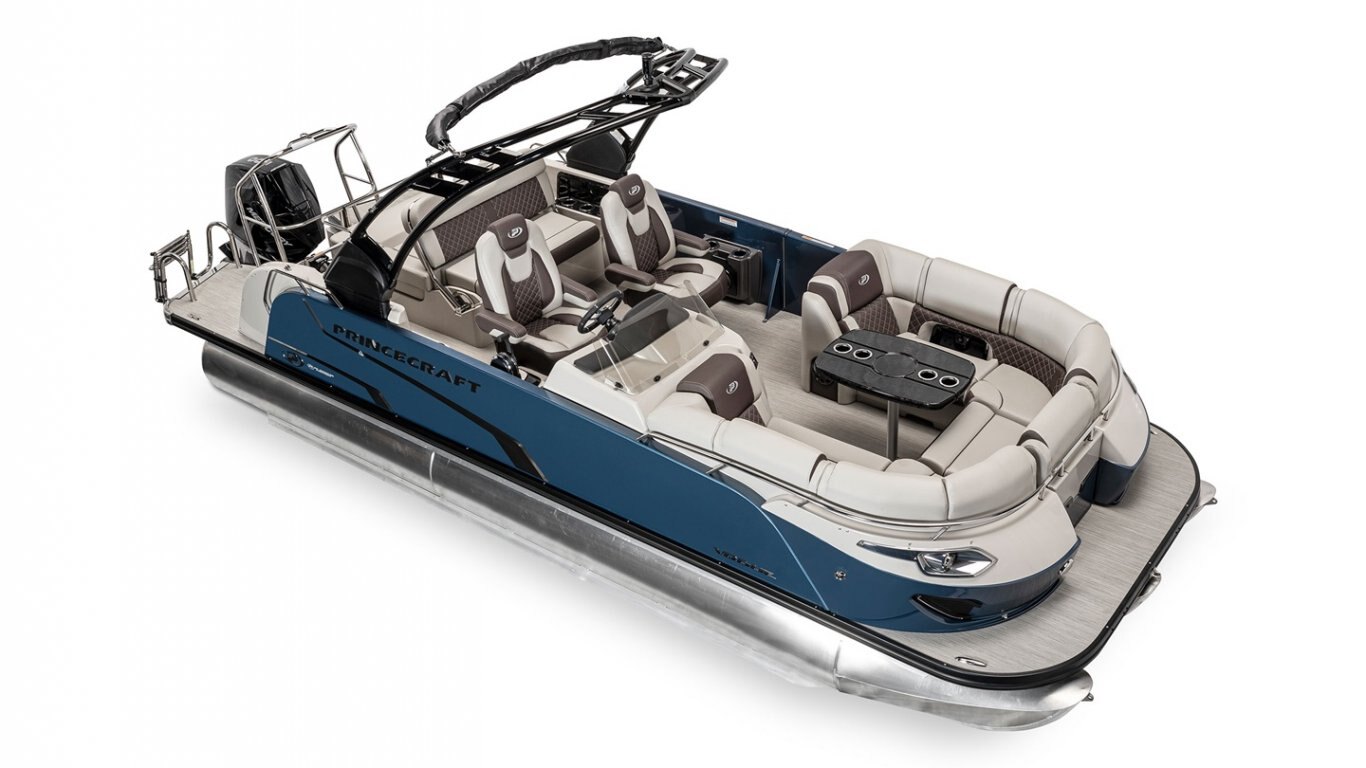 This 23’-11’’ pontoon features all the comfort and convenience you enjoy at home… and more. New automative-style raised helm console including a SIMRAD Go7 multifunction touchscreen with VesselView Link allowing instrumentation display, GPS functions, and sonar (that replaces the standard gauges) and a wireless smartphone charger; new cup holder modules and USB ports integrated into the padding; new integrated trash storage compartment; new folding table; oversized stern swim platform and boarding ladder. Without forgetting the RL design including a multi-position seat module, an integrated cooler and privacy enclosure, and safety railing around the rear seat. Have a party with up to 10 friends or enjoy your favorite water sports in the greatest luxury. Rig your pontoon with an engine up to 250 HP (with the optional Performance Configuration) and get ready for some serious fun!