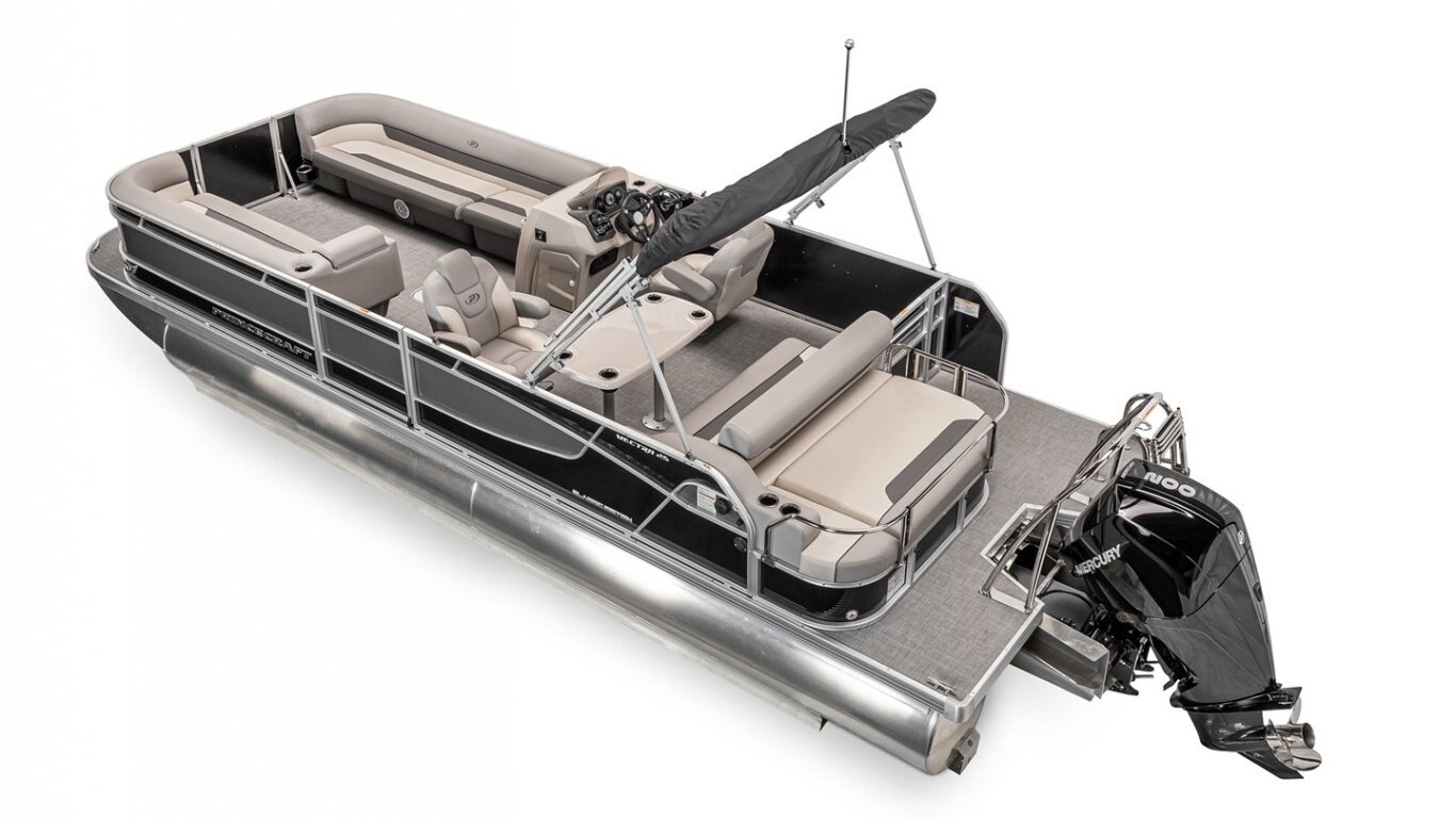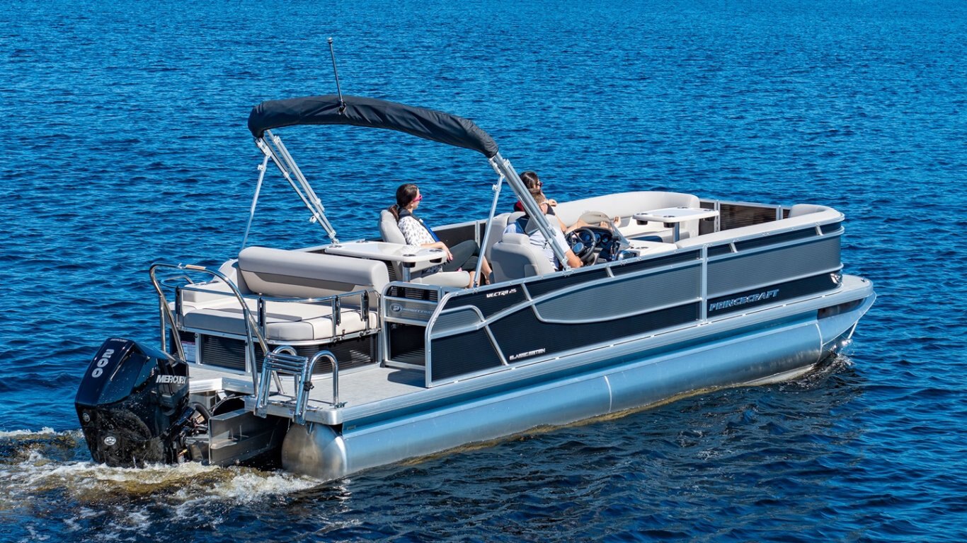If you are looking for a top quality, affordable pontoon boat, with a lot of space to accommodate up to 12 people and that will let you practice all your favorite water sports, look no further than this Vectra® 25 RL. With chaise lounges, a radio, a 12 volt outlet, a swim platform, without forgetting the RL design, at the stern, including a captain passenger seat, a sundeck with a 2-position adjustable backrest, a large table, and storage under all the seating area, you will appreciate the simplicity and practicality of this. This 25’-8’’ pontoon boat can accommodate an engine ranging from 40 to 115 HP, up to 175 HP with the optional Speed Configuration, 200 HP with the optional Sport Configuration, and even 250 with the optional Performance Configuration.