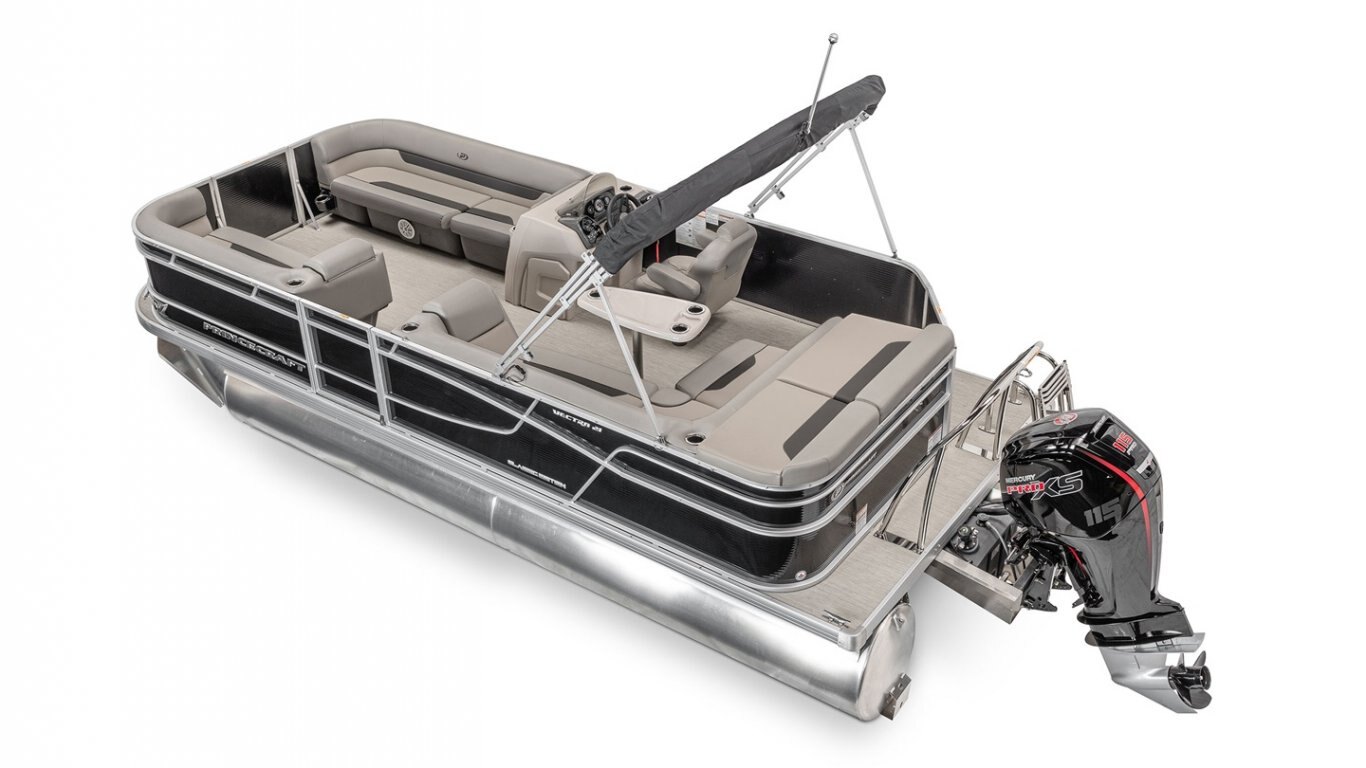 If you are looking for a top quality, affordable pontoon boat, with a lot of space to accommodate up to 10 people and that will let you practice all your favorite water sports, look no further than this Vectra® 21. With chaise lounges, a sundeck, a radio, a 12 volt outlet, a swim platform, and much more, you will appreciate the simplicity and practicality of this. This 21’-6’’ pontoon boat can accommodate an engine ranging from 40 to 115 HP, even 150 HP with the optional Sport Configuration.