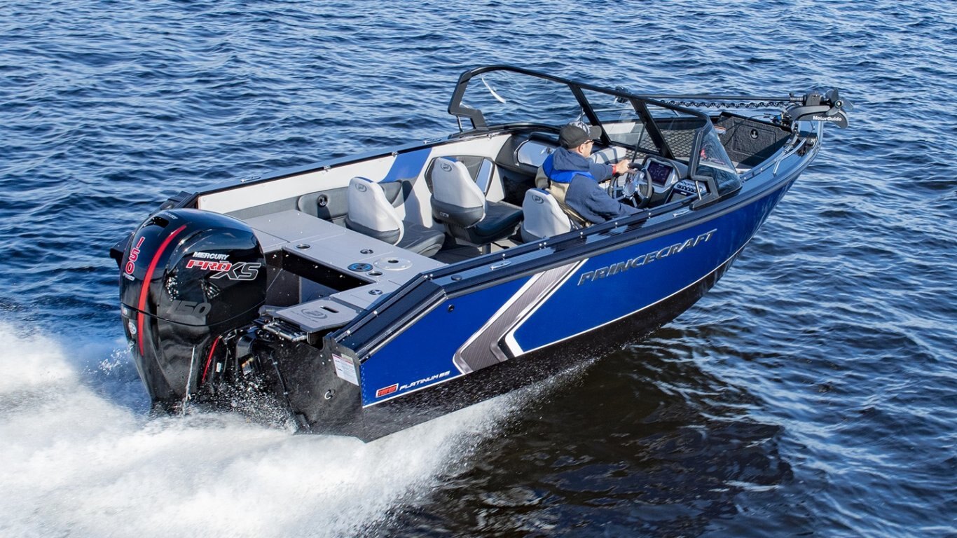Functionality, comfort and beauty is what you will find in the 18’-6’’ fishboat. With bow and aft raised casting platforms, livewells, plenty of storage, rear fold-down jump seats, and a pop-up privacy enclosure, this Platinum SE boat has everything you need to spend the best possible time on the water. This boat can handle an outboard engine ranging from 150 to 175 HP and 7 people (8 in the USA).