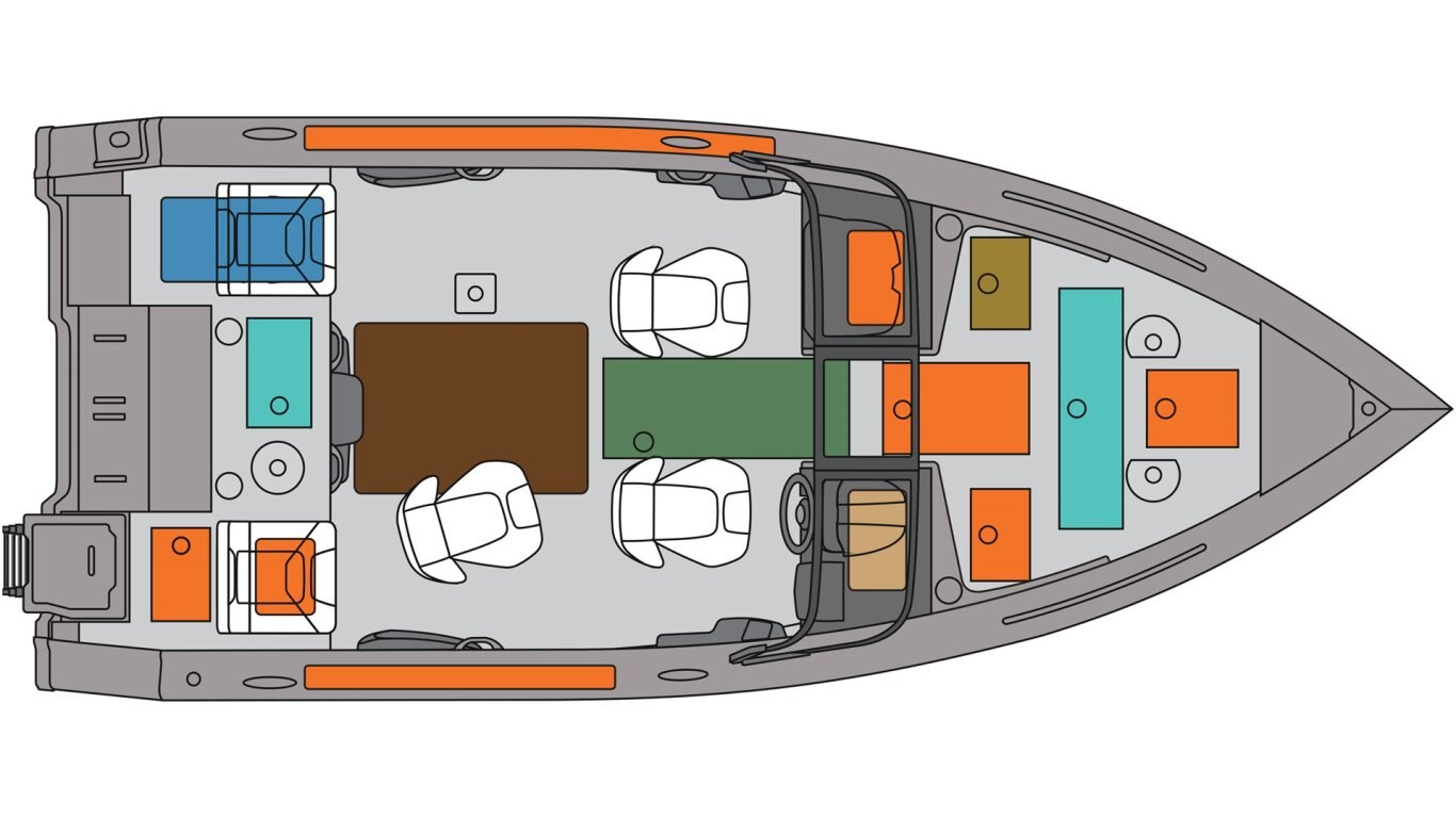 - All the flat surfaces are covered with anti-skid marine grade vinyl