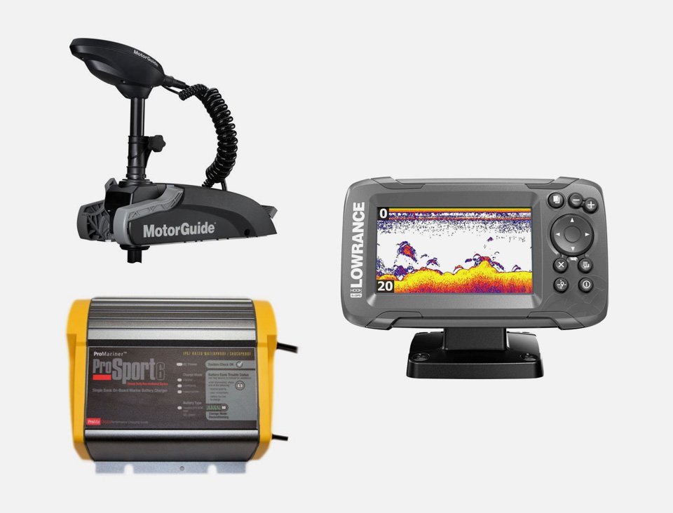 Fish and trolling package Lowrance/Motorguide including Motorguide® Xi3-55 FW wireless 12 volts 54" 55 lbs, sonar Lowrance® Hook2 4x with RAM mount and onboard charger 12 V (ProSport 6)