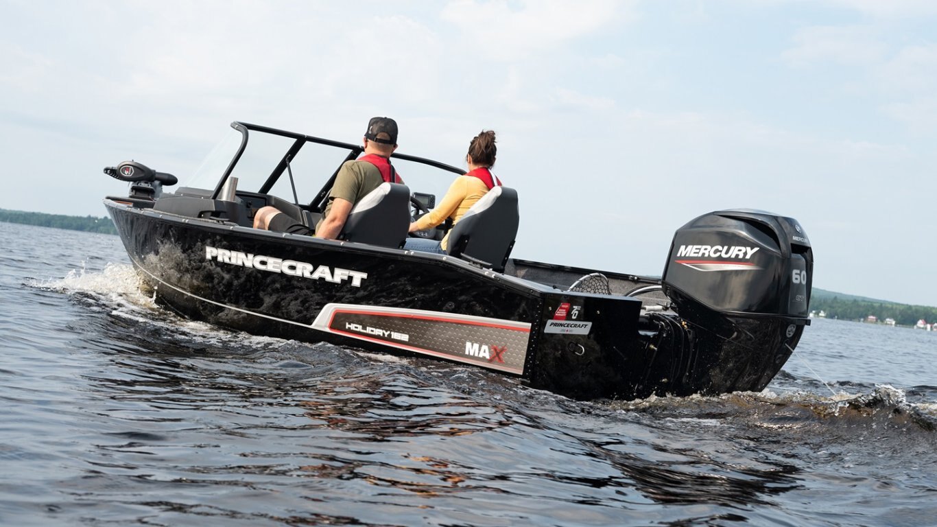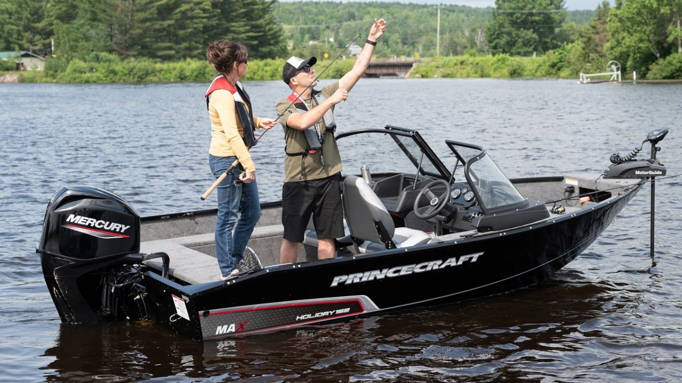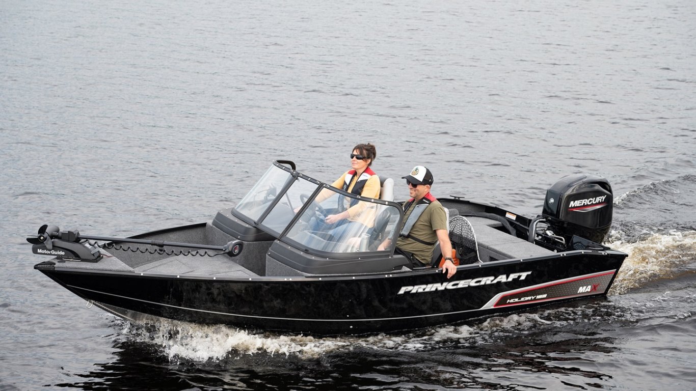 Anti-skid vinyl cockpit floor Marine grade carpet platforms PrinceTrak System: extrusion allowing onboard tool fixing Electric bilge pump Navigation lights Factory-installed snap fasteners for optional canvas camper enclosures and mooring top Interior light(s) 3 cup holders 2 battery holders Trailer cover (black) Sun top with bimini canvas connected to windshield including the bimini structure (black) Emergency reboarding ladder Transducer(s) mounting plate