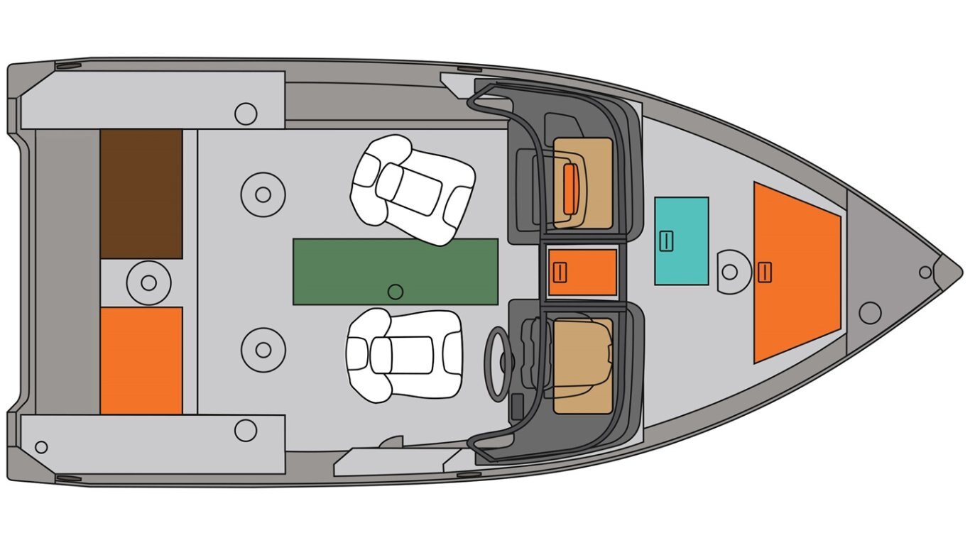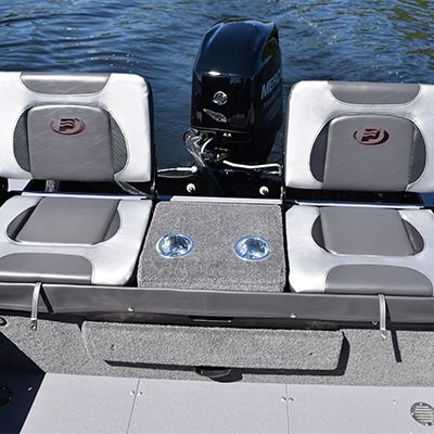 All the flat surfaces are covered with anti-skid marine grade vinyl PrinceTrak System: extrusion allowing onboard tool fixing Electric bilge pump Navigation lights Factory-installed snap fasteners for optional canvas camper enclosures and mooring top 5 cup holders 1 battery holder Emergency reboarding ladder Transducer(s) mounting plate Pressure-treated wood floor covered with marine grade vinyl Passenger side shelf storage