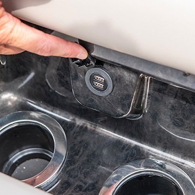 • Convenience package including docking lights, reclining captain's chair with height adjustment (and if applicable, co-pilot recliner seat) and wireless smartphone charger integrated to the console
