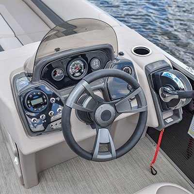 - SeaStar® hydraulic steering with tilt wheel and slider for captain's chair...UE (included with 150 HP engine and up)