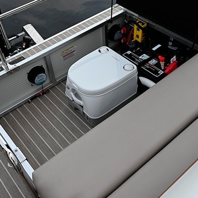 - Head Package including holding tank with a pump out system (9.8 l/ 2.6 U.S. gal.) and a pop-up privacy enclosure