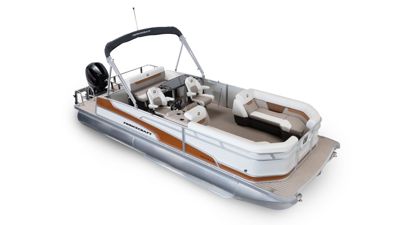 - Copper Special Edition including raised black chrome Princecraft® decals on both sides and front door, copper graphic package, deluxe driver seat (also, if applicable passenger captain chair), LED light under driver console and upholstery, upgraded steering wheel, docking lights and color accent in the upholstery (Must be ordered with Infinity beige/grey vinyl with white lines)