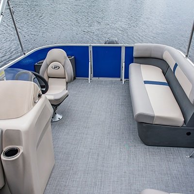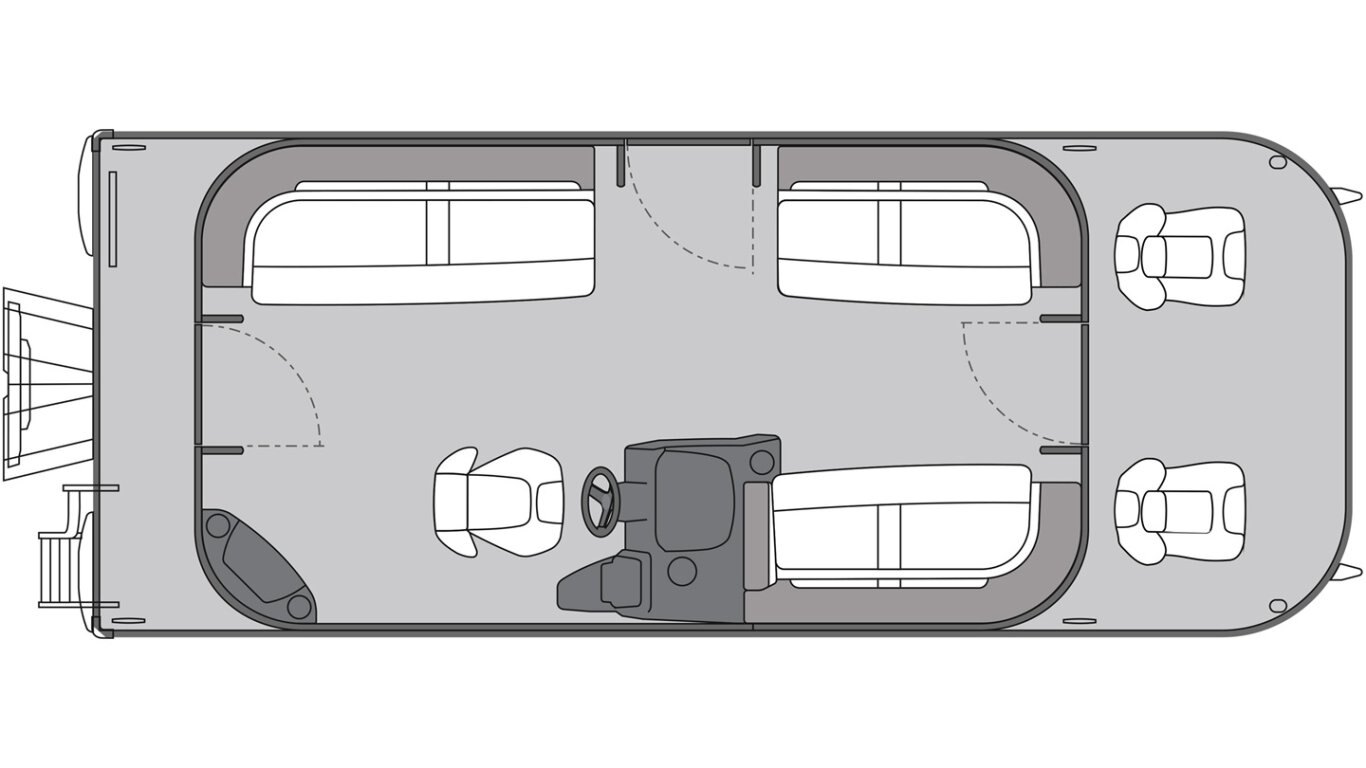 5052-H36 marine grade aluminum alloy 2 1/2" heavy-duty extruded Z-aluminum cross channels NMMA & Transport Canada certified 1 1/4" anodized aluminum rails Sealed pontoon bulkheads with top mounted air plug (23") V-shaped aluminum engine pod Select dark grey vinyl floor covering (Teak Supreme Solid Dark) Extruded aluminum full-length pontoon keels Extruded aluminum full-length pontoon skirting Stern molded corners Walk-thru rear gate with lift and lock hinges Walk-thru bow gate with lift and lock hinges Port side gate with lift and lock hinges (24") Stern swim platform Stainless steel bow eye 4- 6" chromed deck cleats