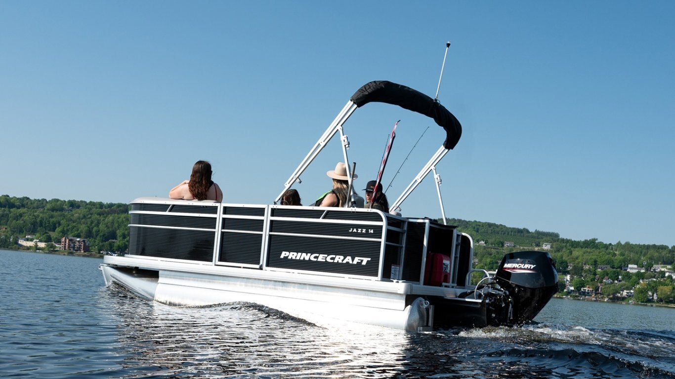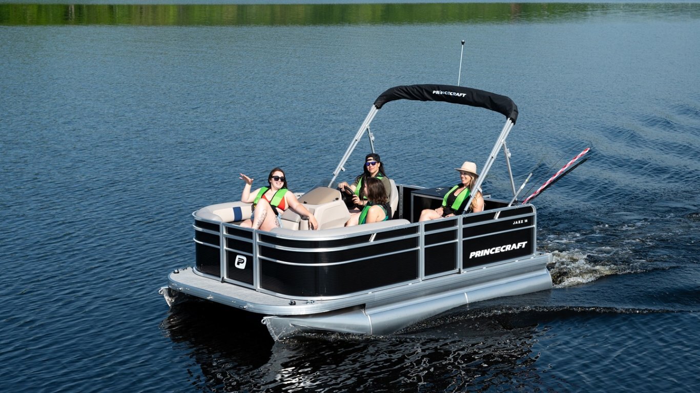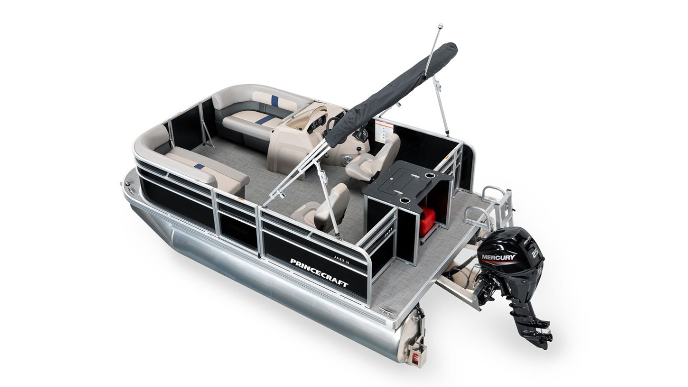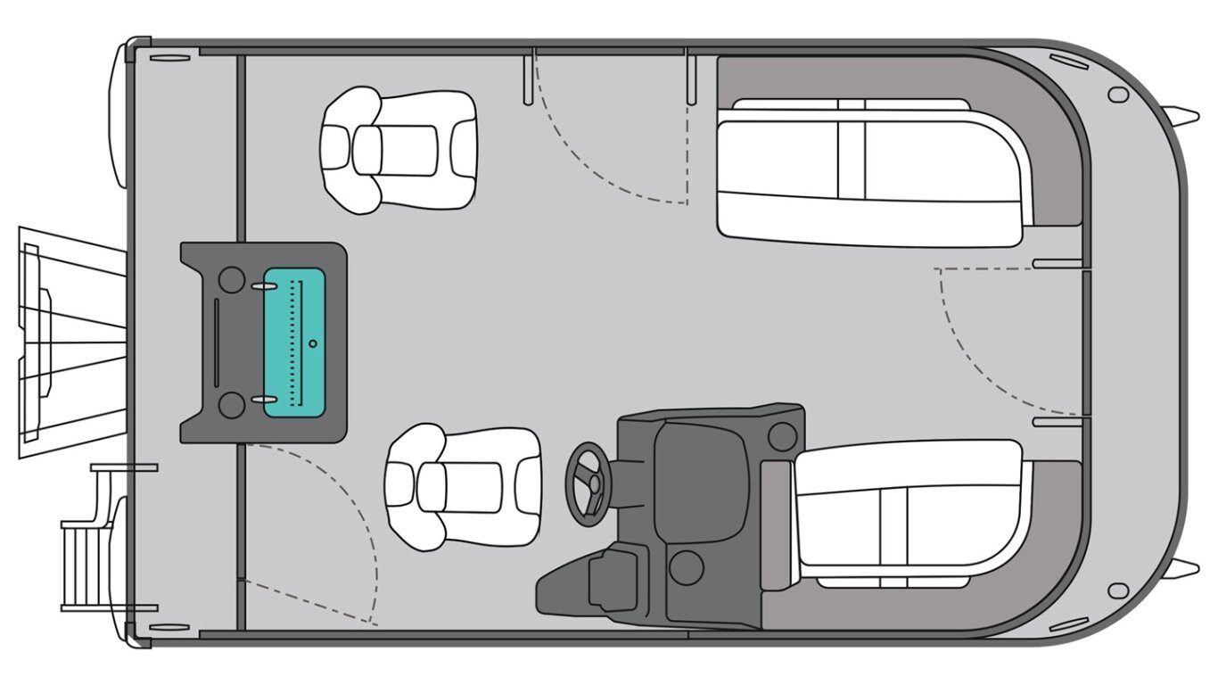5052-H36 marine grade aluminum alloy 2 1/2" heavy-duty extruded Z-aluminum cross channels NMMA & Transport Canada certified 1 1/4" anodized aluminum rails Sealed pontoon bulkheads with top mounted air plug (23") V-shaped aluminum engine pod Select dark grey vinyl floor covering (Teak Supreme Solid Dark) Extruded aluminum full-length pontoon keels Extruded aluminum full-length pontoon skirting Stern molded corners Walk-thru rear gate with lift and lock hinges Walk-thru bow gate with lift and lock hinges Port side gate with lift and lock hinges (24") Stainless steel bow eye 4- 6" chromed deck cleats