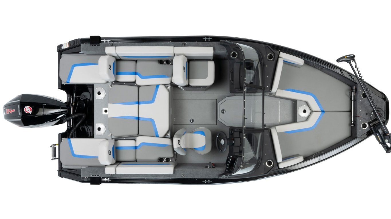 • Stern seating area with a livewell underneath (must ordered and installed at the factory) (blue accent)