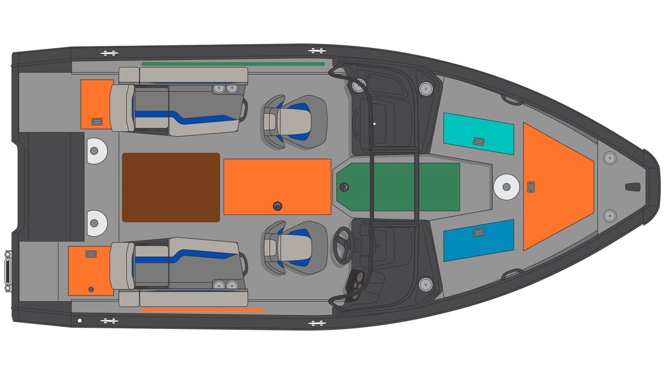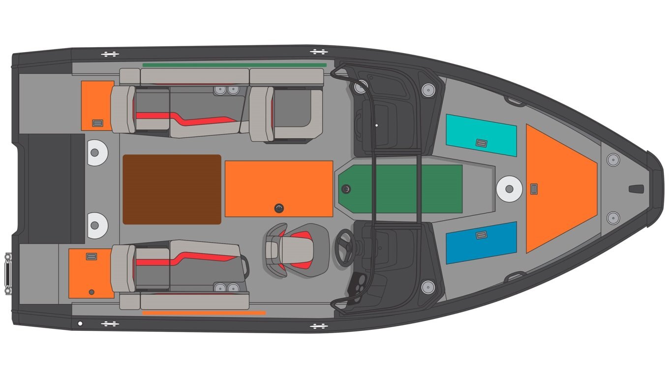 • Stern seating area with a cooler underneath (can be install by the dealer but no livewell system) (blue accent)