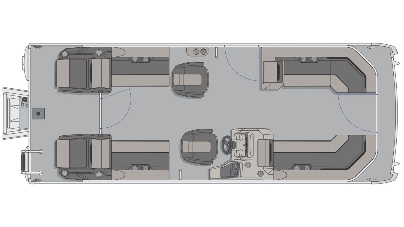 • Fun Zone: 2 rear facing loungers with storage under seats and integrated cup-holders