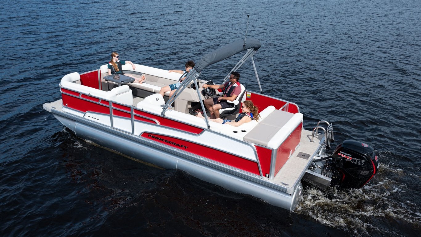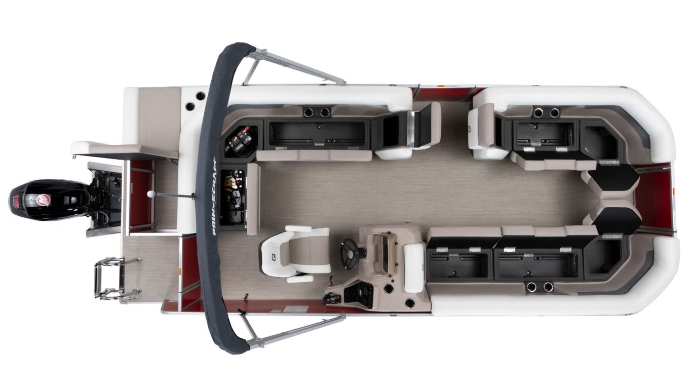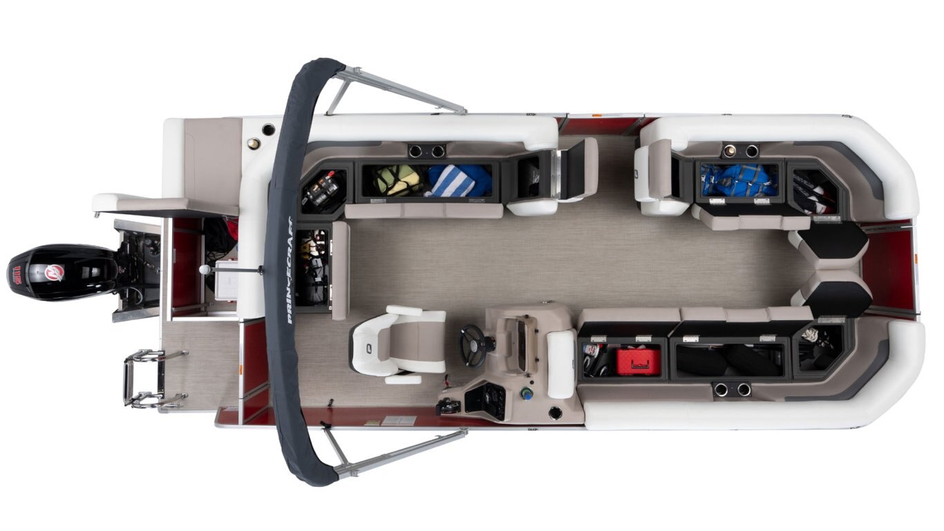 - Onyx White Edition including 3D Princecraft® black chrome logo on both sides and front door, onyx white exterior colour accent, deluxe driver seat (also, if applicable passenger captain's chair and slider), LED lighting under driver console and furniture, top flywheel, docking lights and colour accent in the standard upholstery only