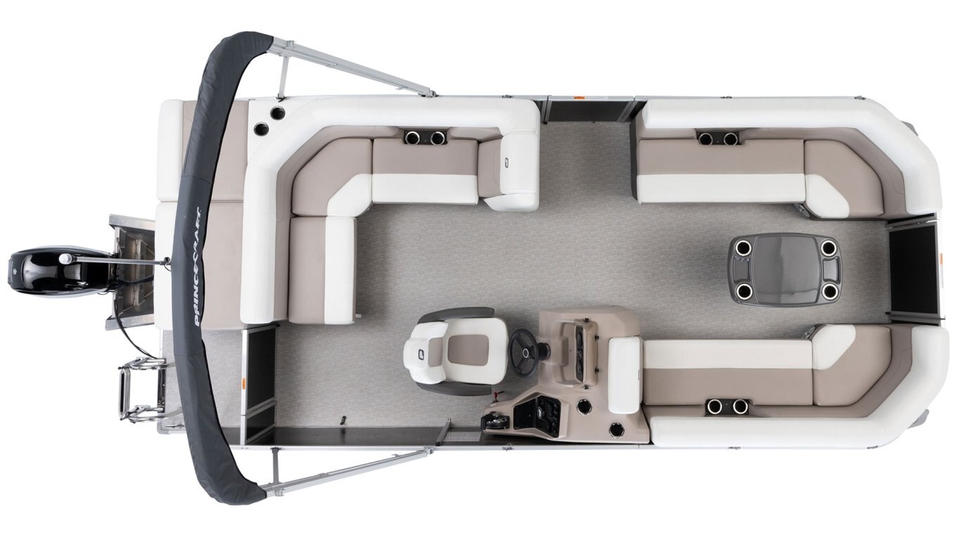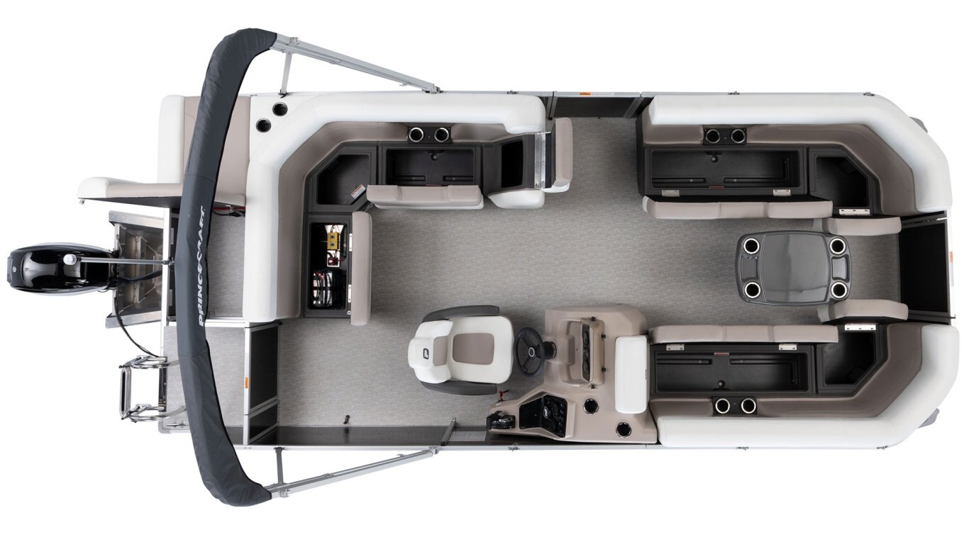 • Onyx White Edition including 3D Princecraft® black chrome logo on both sides and front door, onyx white exterior colour accent, deluxe driver seat (also, if applicable passenger captain's chair and slider), LED lighting under driver console and furniture, top flywheel, docking lights and colour accent in the standard upholstery only