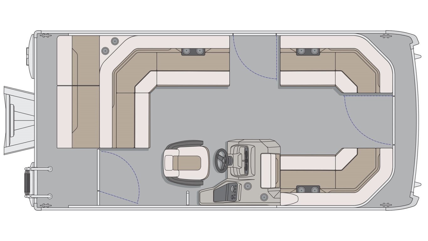 • Nautical Blue Edition including 3D Princecraft® black chrome logo on both sides and front door, Nautical blue exterior colour accent, deluxe driver seat, LED lighting under driver console and furniture, superior steering wheel, docking lights and colour accent in the standard upholstery only
