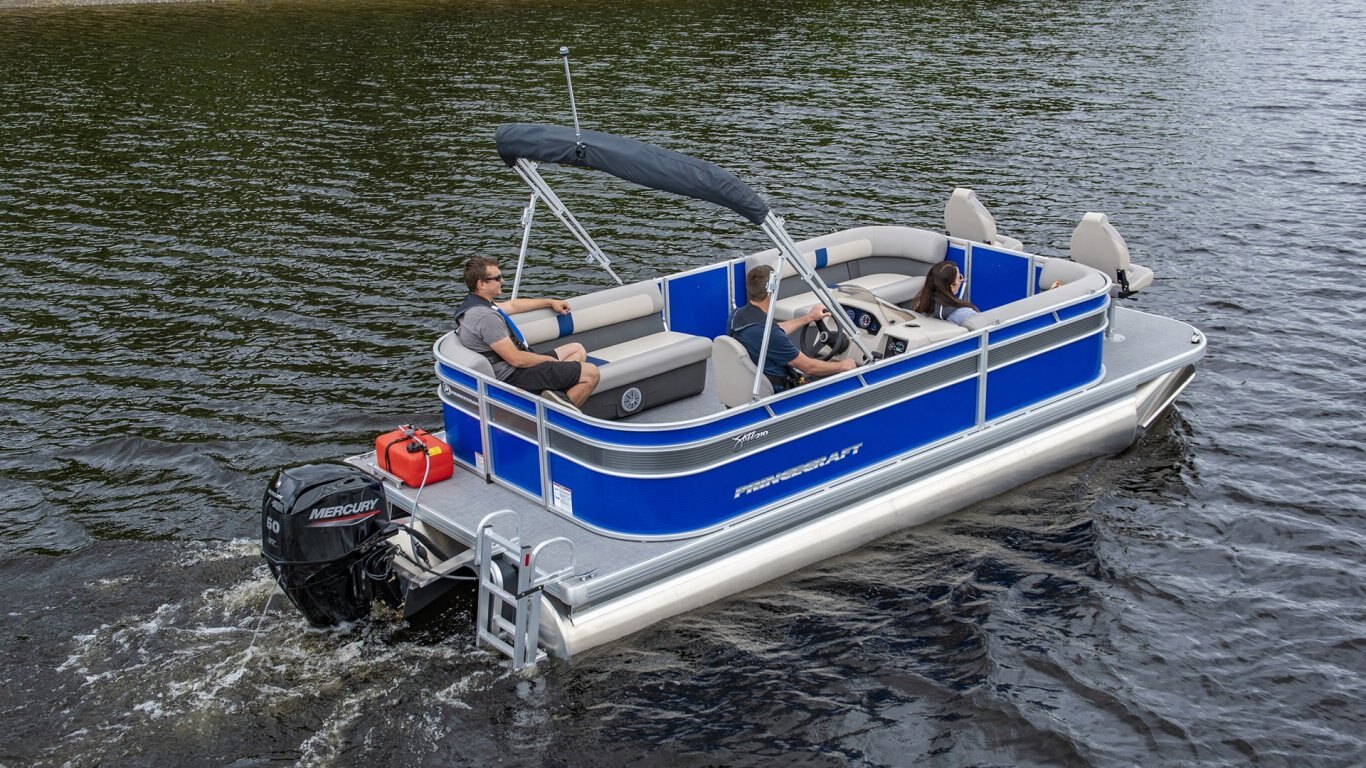 • Concert Package including 160-watts AM/FM/Bluetooth Jensen® radio with 2 speakers, speedometer, tachometer, horn, LED docking lights, in-dash USB plug and smoked windscreen (for 9.9 to 25 HP engines)