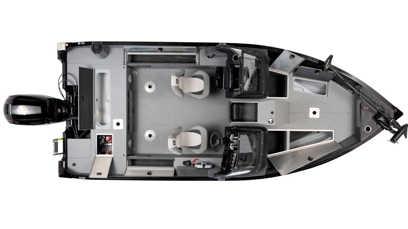 • Tournament fishing TFT Anthracite grey package includes: Black and Anthracite grey exterior color, 3D Princecraft® black chrome logo, insulated livewells, additional bow livewell, 4 flip cleats, tournament Fishing Team graphics, fish ruler, deluxe seat exchange, flat seat bases on fishing platforms, quick rod storage, nets addition under consoles and on bow platform
