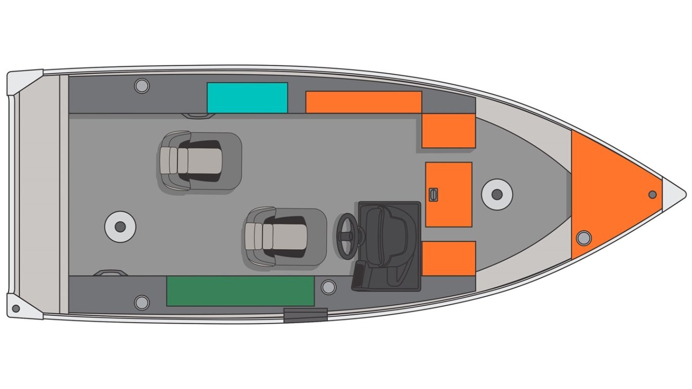 All the flat surfaces are covered with anti-skid marine grade vinyl Electric bilge pump Navigation lights 1 handle 4 cup holders 1 battery holder Emergency reboarding ladder Transducer(s) mounting plate Pressure-treated wood floor 2 side storage compartments In-floor bow storage
