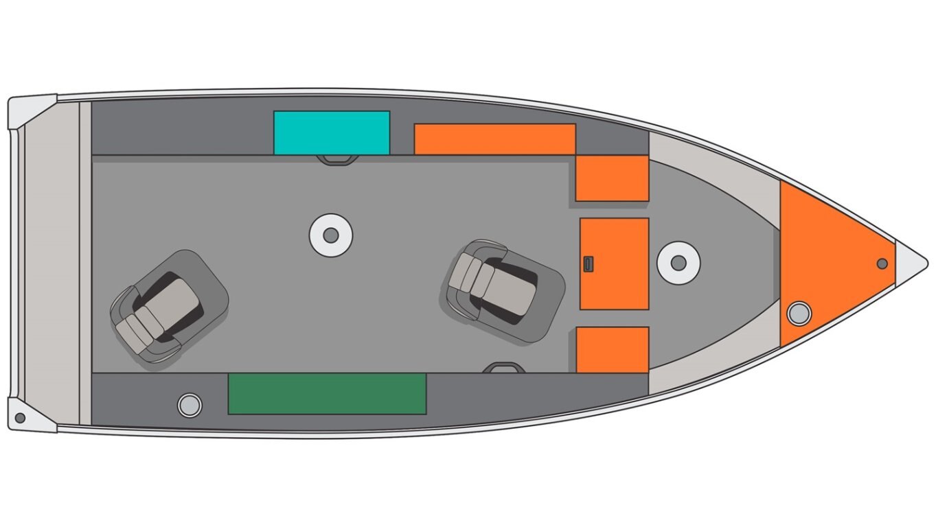 All the flat surfaces are covered with anti-skid marine grade vinyl Carling switch panel with indicator lights Electric bilge pump Navigation lights 1 handle 2 cup holders 1 battery holder Emergency reboarding ladder Transducer(s) mounting plate Pressure-treated wood floor 2 side storage compartments In-floor bow storage