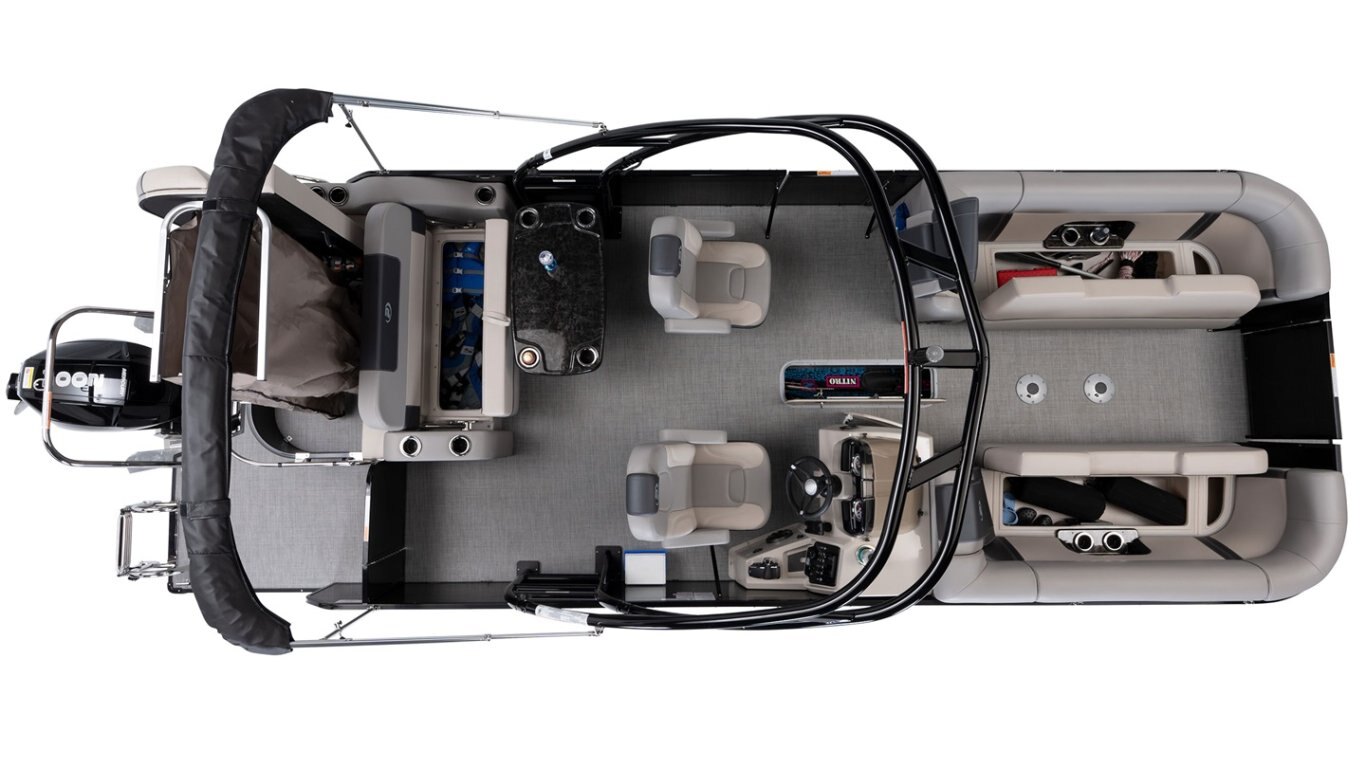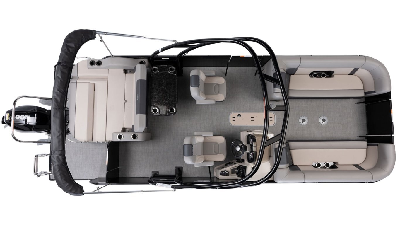 • Protective cover (black) for pontoon with an electric bimini and performance configuration