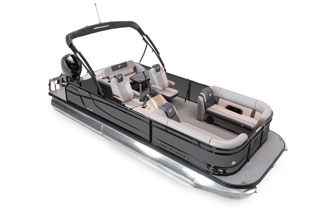 - Protective cover (black) for pontoon with an electric bimini and performance configuration
