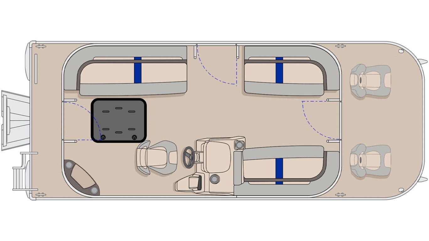 Graphic package includes: Blue metallic stripe all around the pontoon