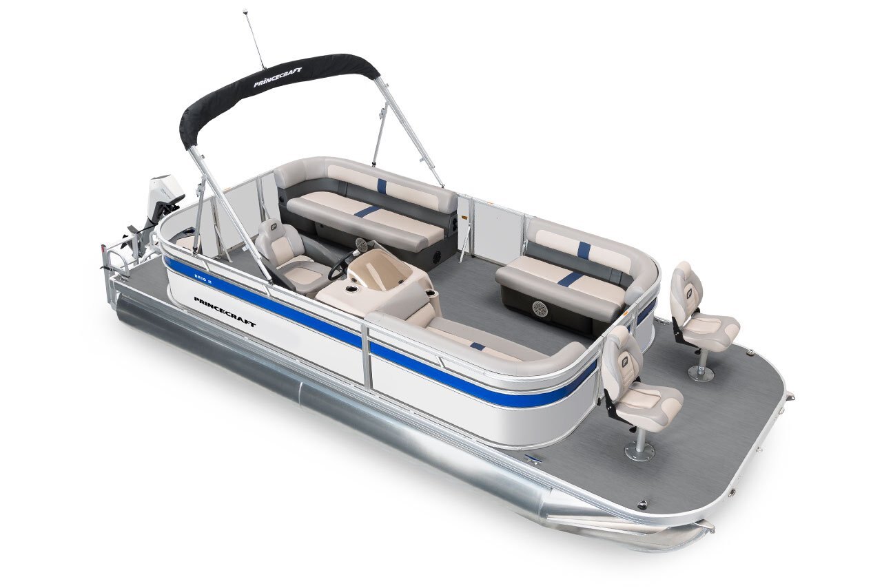 Black Edition includes: Black painted railing, black anodized deck bumper, darker upholstery, deluxe captain's chair, 3D Princecraft® black chrome logo on both sides and front door