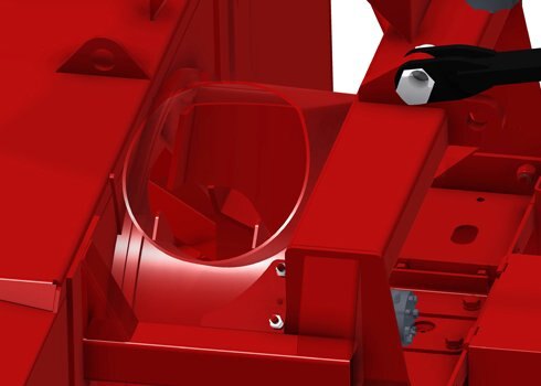 • Hydraulic cylinder and hose support for chute deflector adjustment.