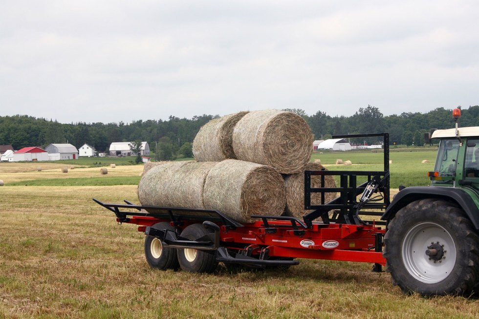 Only one operator needed to pick up and transport dry hay or silage bales. With its simple, robust construction and a patented loading arm designed to turn the bale, loading is quick and safe. All the surfaces are smooth to allow the bales to slide easily, with or without netting. With its extra robust chassis and tandem axles, the auto-load bale handler help reduce manpower, fuel costs, time in the field and minimize soil compaction.