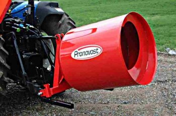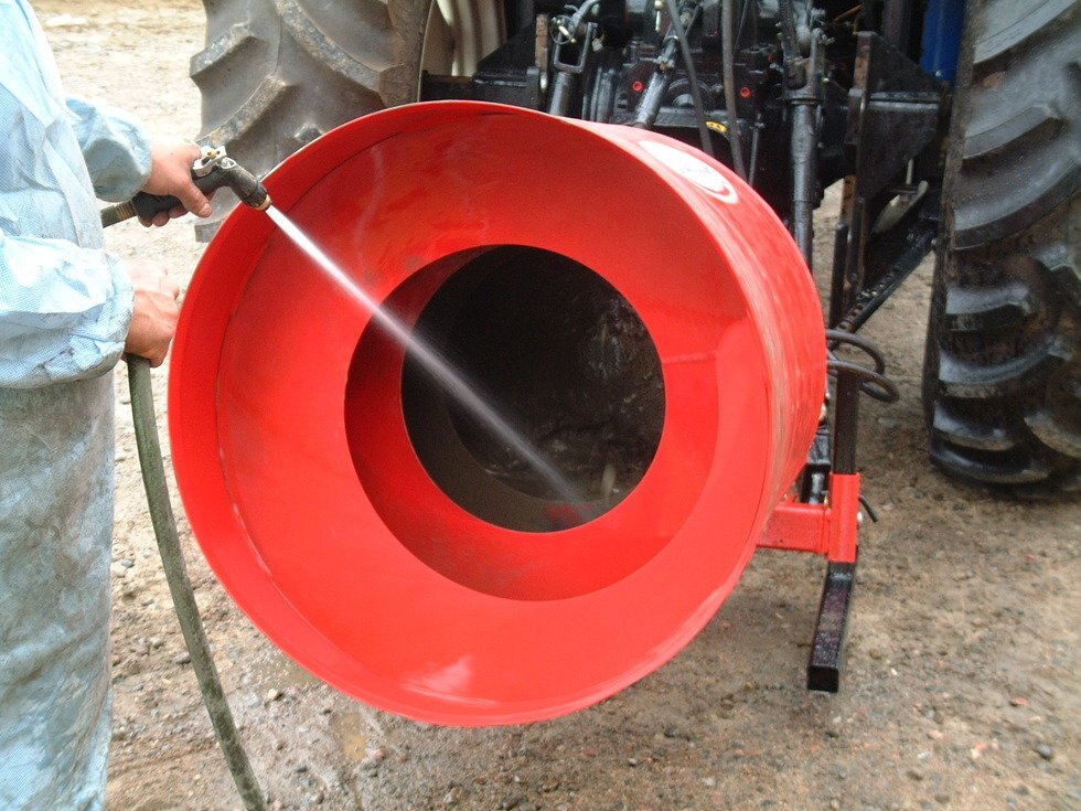 Spiral vane to mix and to unload by simply reversing the rotation, no tipping required. Chain driven with dampening valve. No cylinder required for 3-point hitch. Hydraulic motor connects to one double acting outlet. Installs easily on all 3 point hitch equipped tractors and can be installed on front-end loaders. Quick attach available for "skid steer" loaders. Quick and easy clean up and maintenance. Support leg available.
