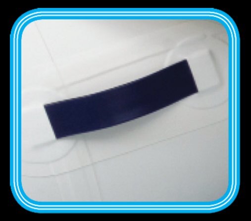 Large blue and white rubbing strake