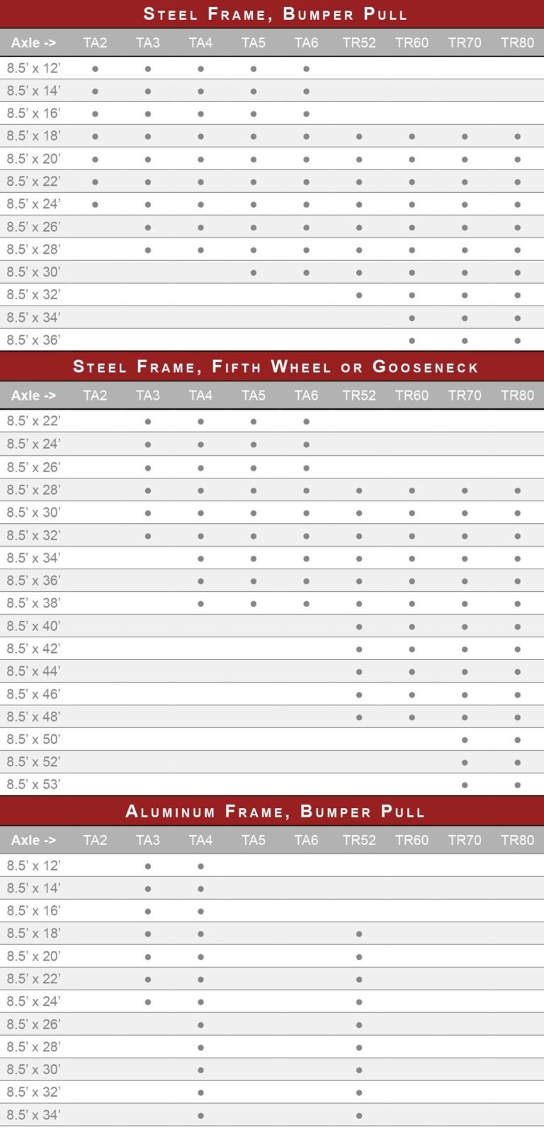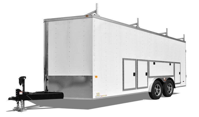 Whether you need a translucent roof to see what you’re working on or you just want another shelf for more gear, the RTBT work trailer can accommodate it. Optional ladders, interior panel boxes, 4-door exterior-access toolboxes, easy access storage and outlets galore — what more could a builder ask for? Hitch options vary depending upon size, from bumper pull up to gooseneck, so see product details to find your match.